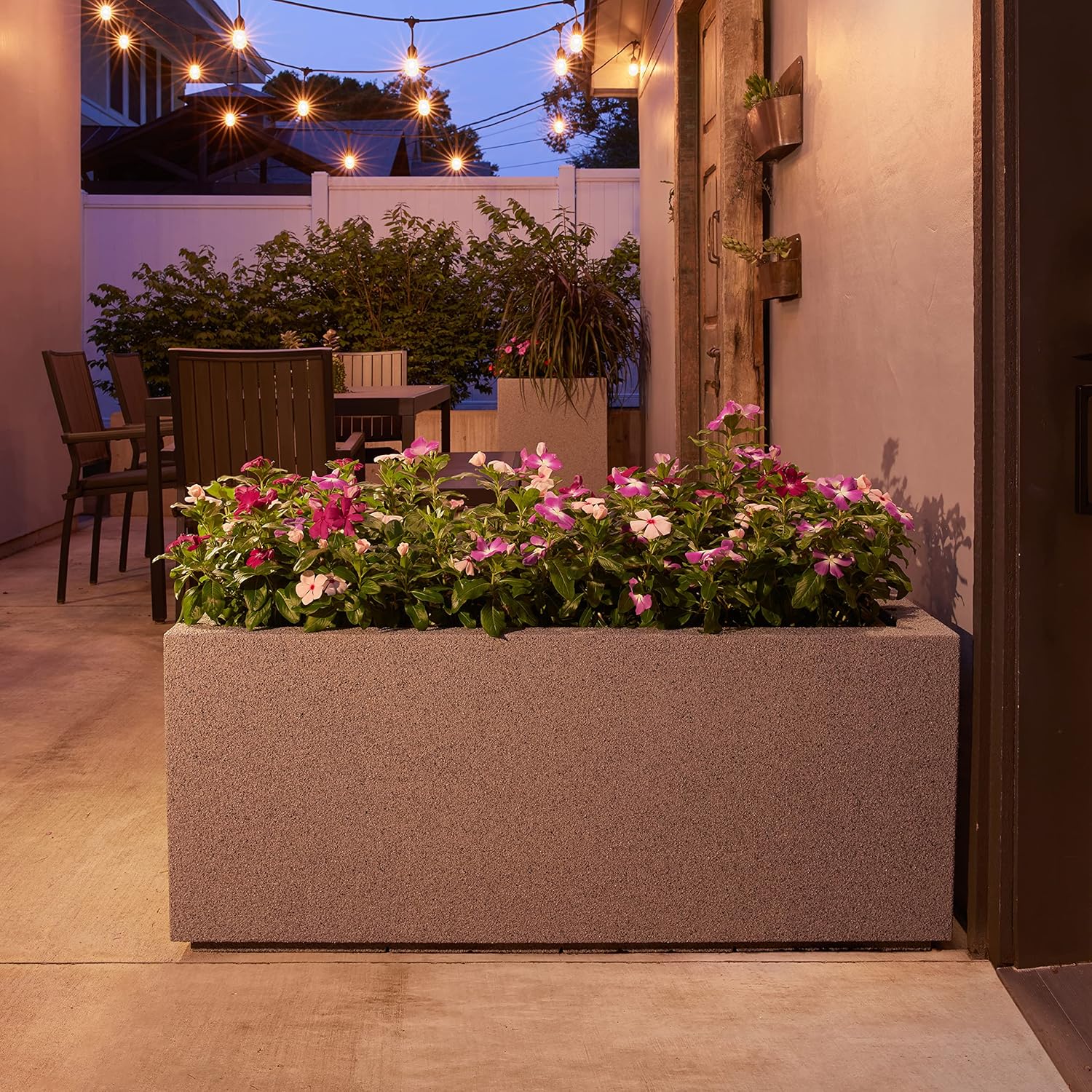 - LIGHTWEIGHT AND DURABLE: PolyStone Planters are made like no other on the market today! Our innovative long garden containers are handcrafted of three distinct eco-friendly layers which provide extreme durability. With the substantial appearance of cast-stone or concrete, even the largest sizes of our planters are surprisingly lightweight and easy to handle.