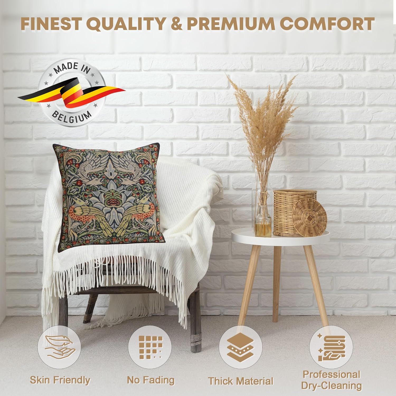 - Impeccable Craftsmanship: Are you searching for the perfect ambiance for your loved ones? Say goodbye to the crappy throw pillow cover and experience the epitome of Jacquard fabric decorative pillow covers made with high-quality 100% cotton. Elevate the aesthetics of your living space using our blue peacock tapestry pillow covers. Impress your guests with our carefully crafted handmade covers, created by artisans in Belgium on woven panels to add splendid details to your decor