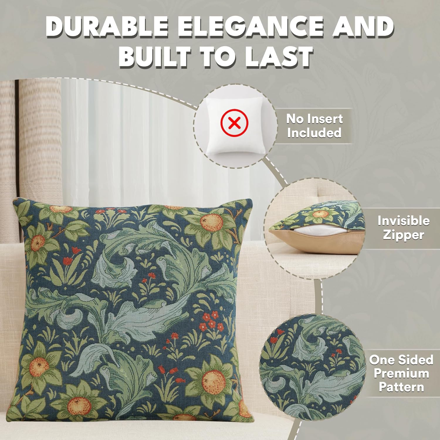 - Timeless Durability: Elevate your decor with our skin-friendly William Morris pillow covers 19βX19β, where quality and style come together. A sturdy hidden zipper ensures easy pillow insertion/removal, while the overlock stitches prevent seam ripping. Unlike thin printed cushion covers prone to tearing, our decorative pillows for couch with a super-soft backside are crafted with thick premium threads for long-lasting quality. THE PACKAGE INCLUDES A SINGLE TAPESTRY PILLOW COVER WITHOUT AN INSERT