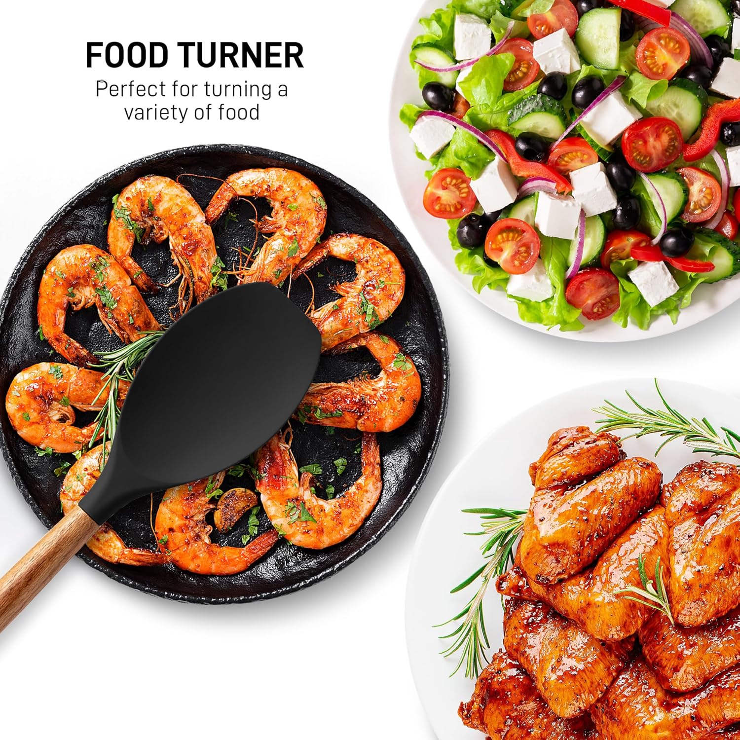 - PREMIUM QUALITY THAT LASTS: These kitchen utensils are made of food-grade silicone with a heat resistance of up to 464°F, making these ideal for stirring food in hot pans. The handles are crafted from authentic acacia hardwood, perfect for long-term use.