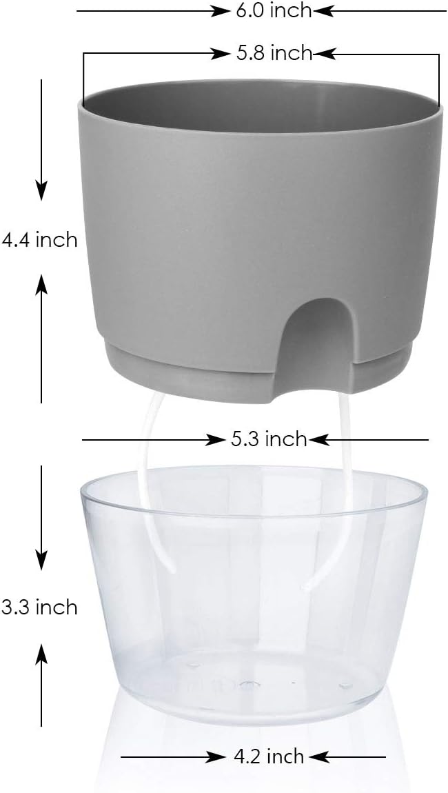Vanavazon 6 Inch Self Watering Planter Pots for Indoor Plants, 3 Pack African Violet Pots with Wick Rope-Grey