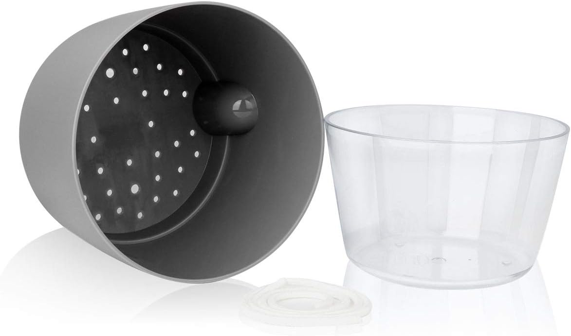 - Thanks to the double-layer design that allows excess water to be stored in the bottom of this planter pot and provided to your plant with wick rope.