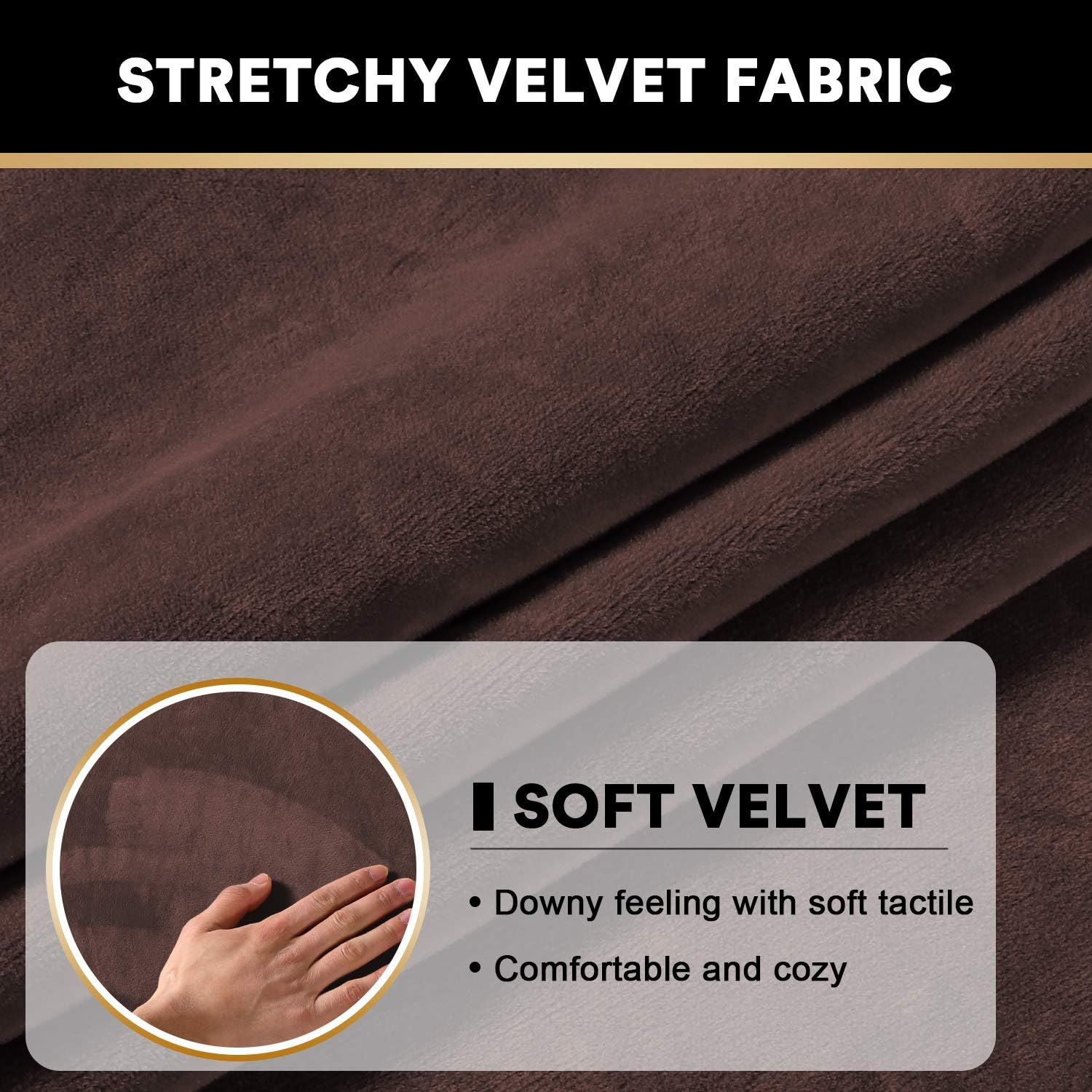 PrinceDeco Brown Furniture Cover, 2 Pcs Velvet Stretch Sofa Cushion Covers for Individual Cushions, Pet Friendly, Stay in Place, Machine Washable