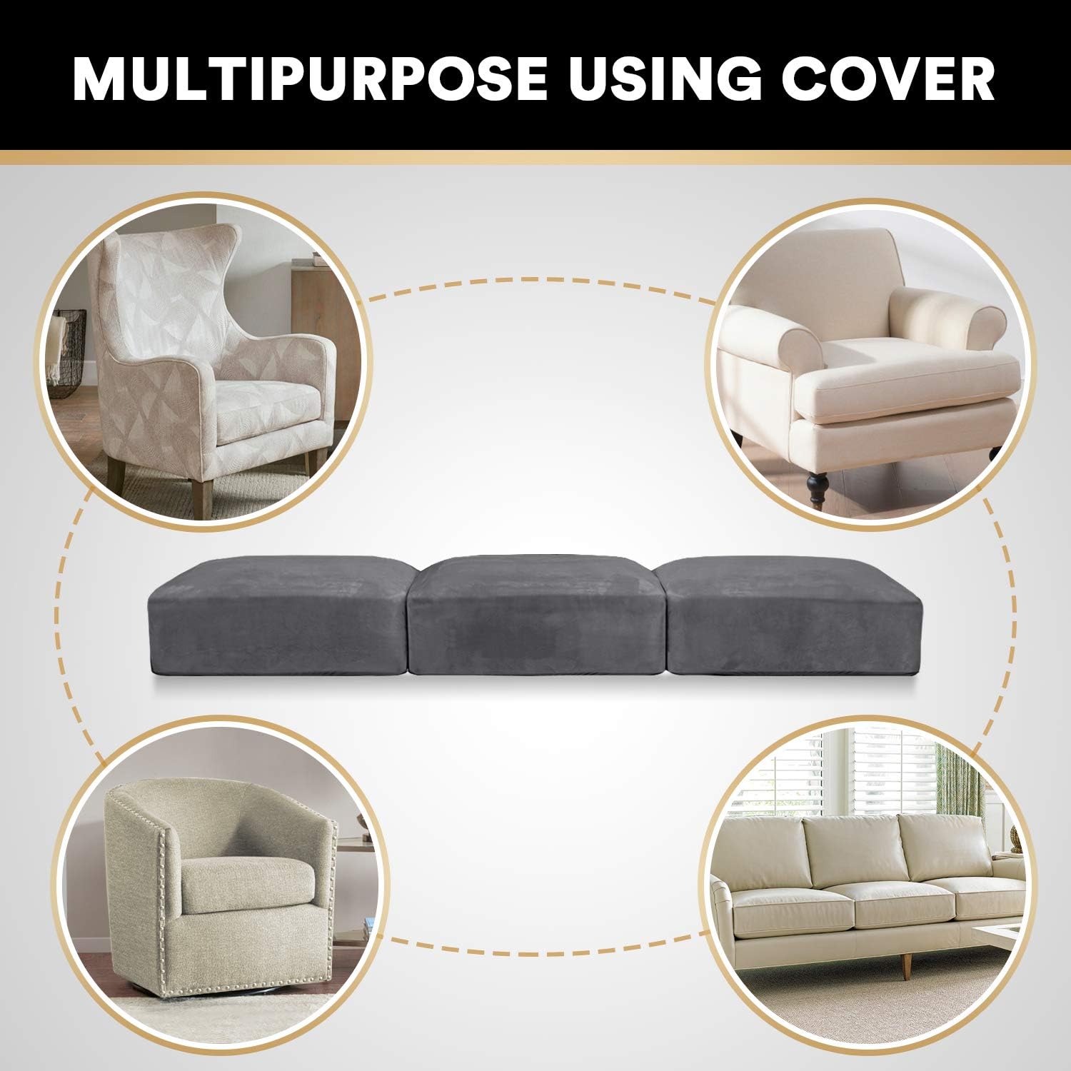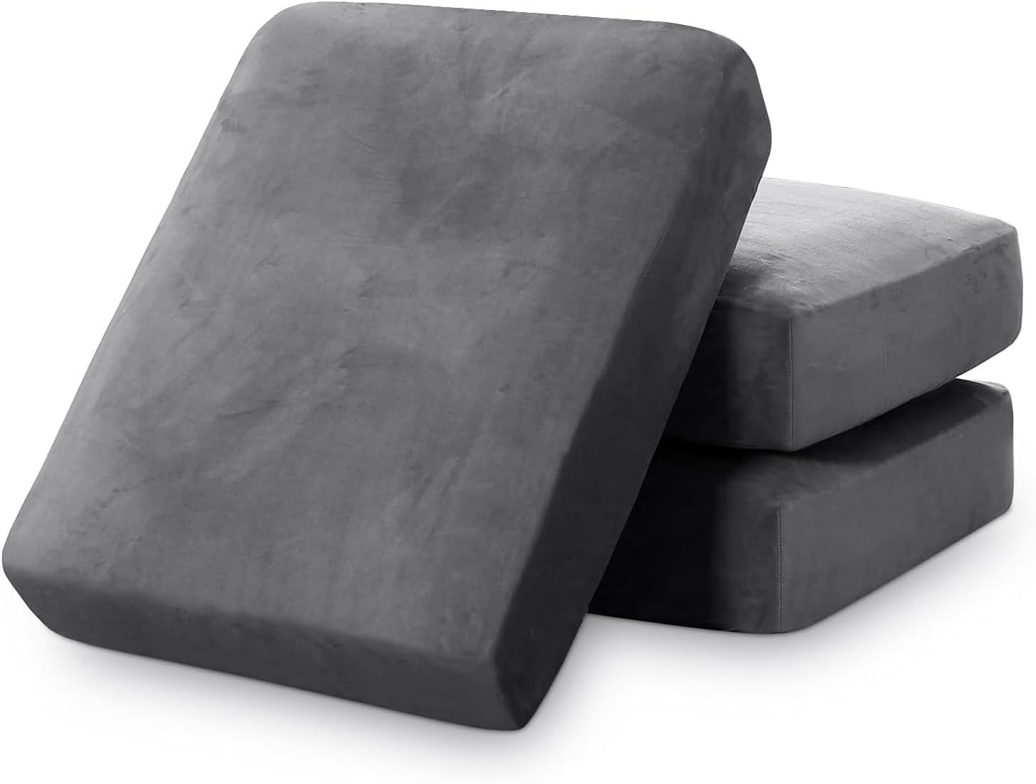 PrinceDeco Stretch Sofa Cushion Covers for Couches and Sofas,Soft Velvet Couch Seat Covers, Sofa Covers Washable, Seat Cushion Cover for 3 Couch Sofa Pet Friendly - Grey, Each Width Up to 29.5"