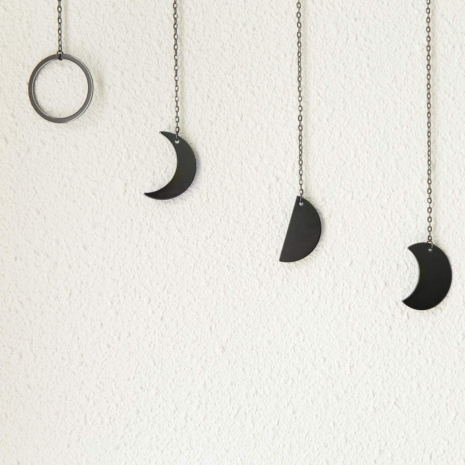 - Materials: Moon is made from metal and Iron chain with black finish. Come with hooks and expansion tubes, easy to install and hang onto the wall
