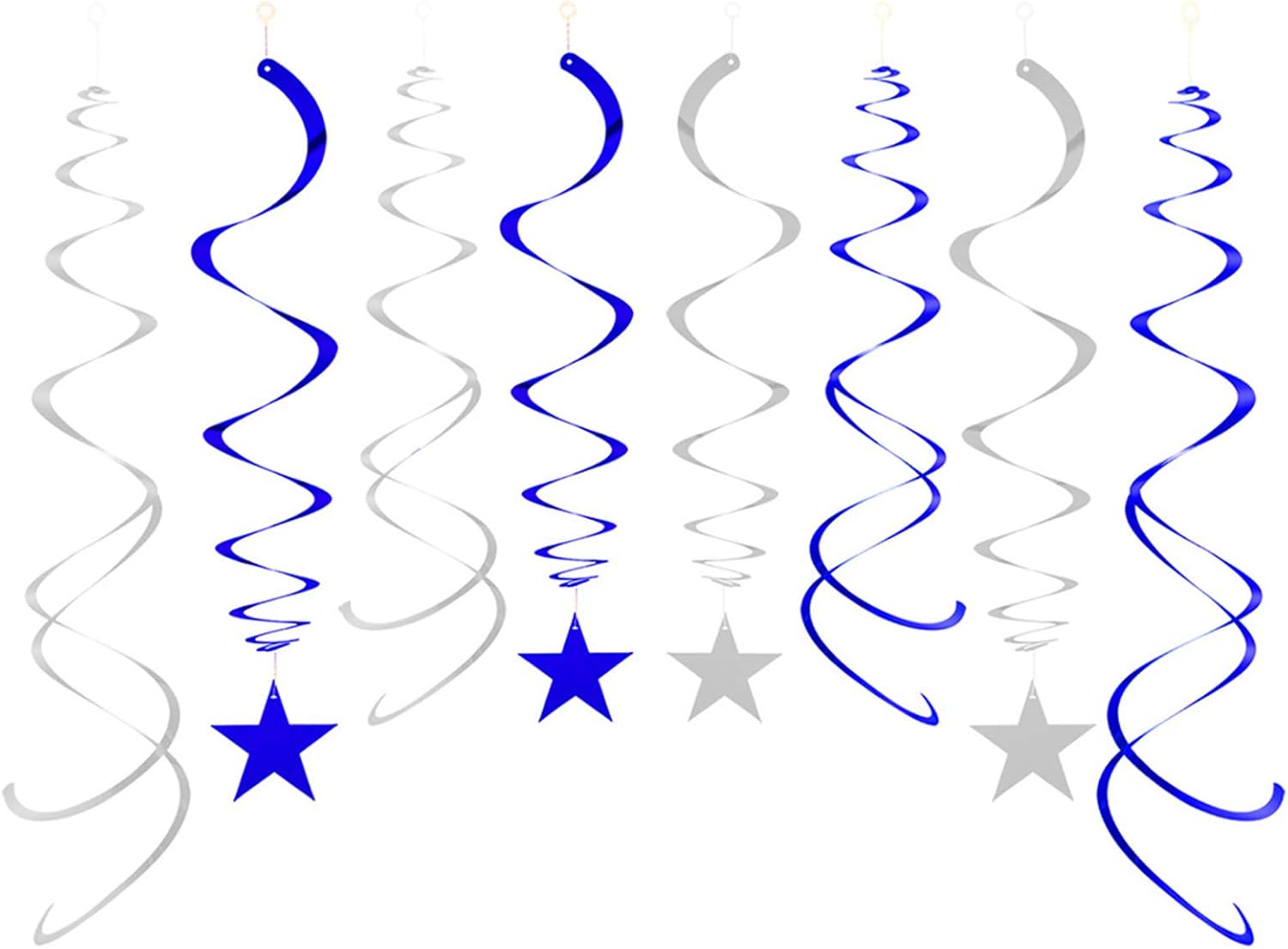 Party Star Swirl Decorations, Blue and Silver Foil Ceiling Hanging Star Swirl Decorations, Whirls Decorations for Birthday | Wedding | Anniversary | Graduation Party, Pack of 30