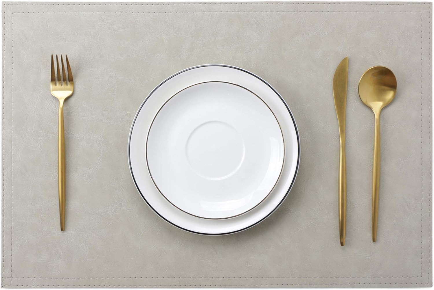Waterproof PU Placemats, Faux Leather Dining Table Mat, Set of 4, Easy to Wipe Off Scrub Vinyl Mat, Heat & Stain Resistant for Office Conference Table, Home Decor G Parchment White