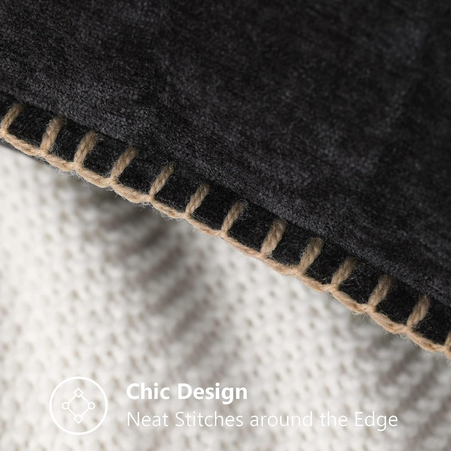 decorUhome Chenille Soft Throw Pillow Covers 16x16 Set of 2, Farmhouse Velvet Neutral Decorative Euro Pillow Covers with Stitched Edge for Couch Sofa Bed Home Decor, Black