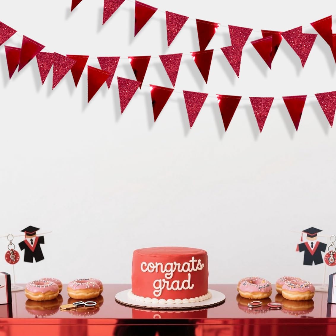 - Special Design - Our red triangle flag banner garland are made of two environmental materials paper alternately.Double sided metallic paper and glitter paper with neat cut,strong,durable and reusable.
