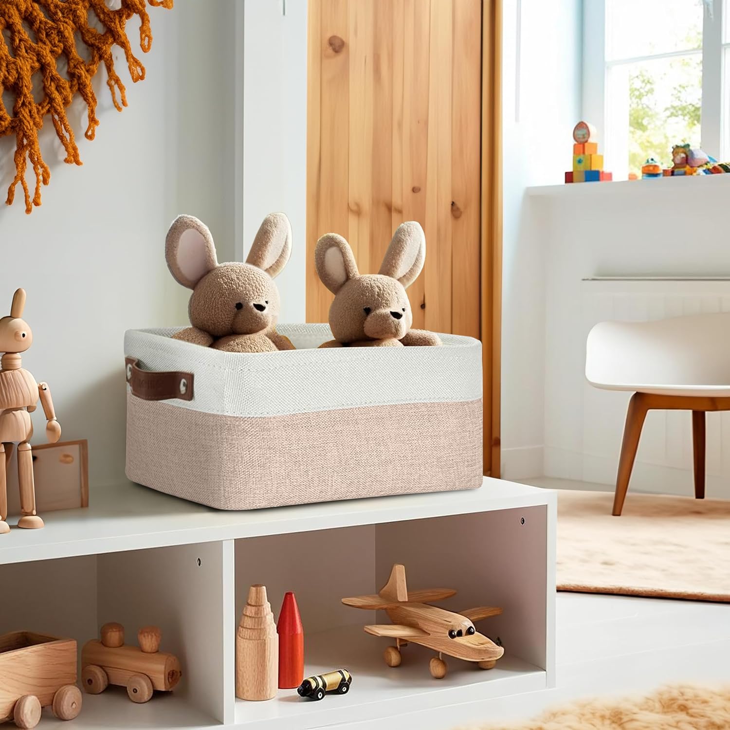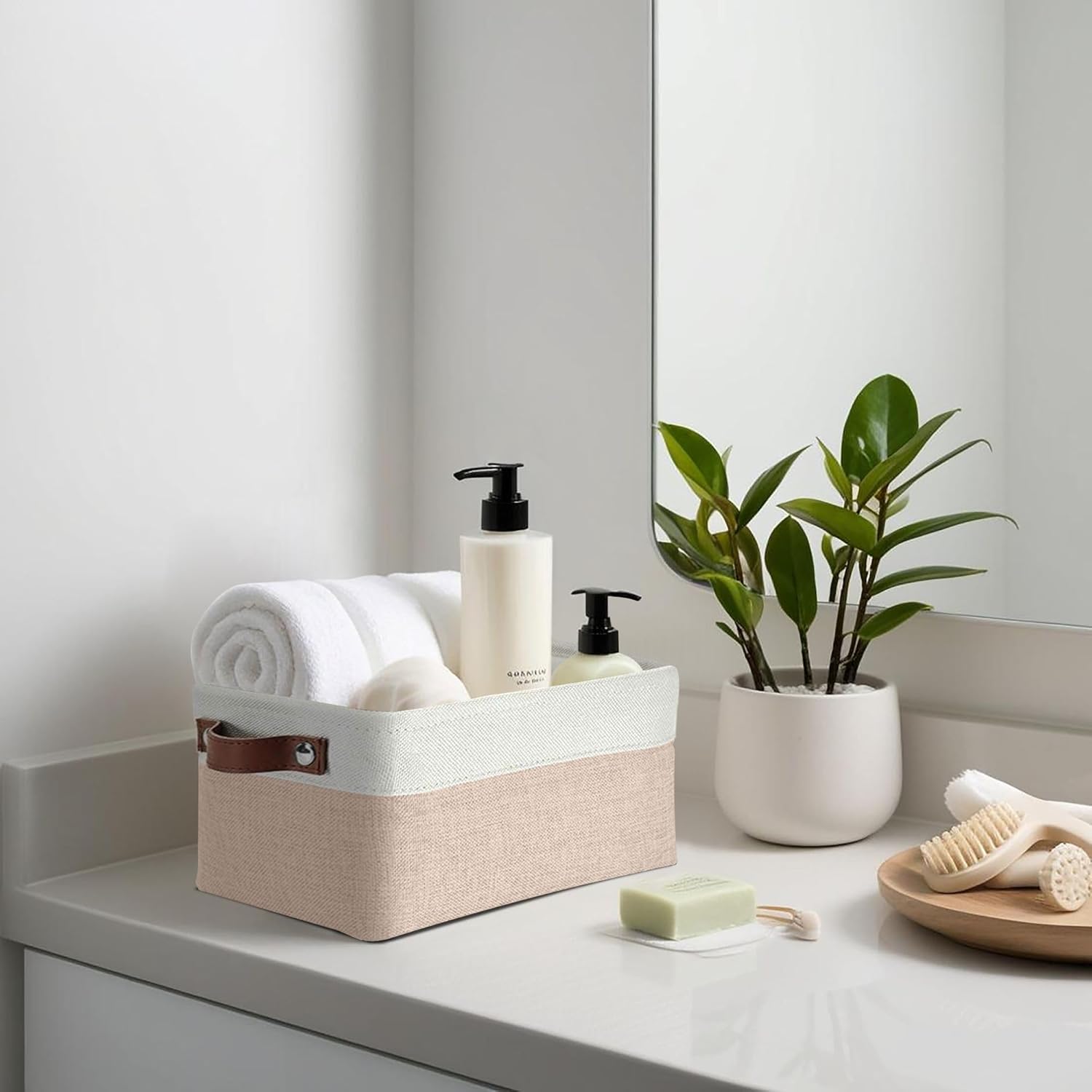 DECOMOMO Small Storage Basket, Closet Storage Bins, Baskets for Organizing Shelves (Beige & White, Small - 6 Pack)