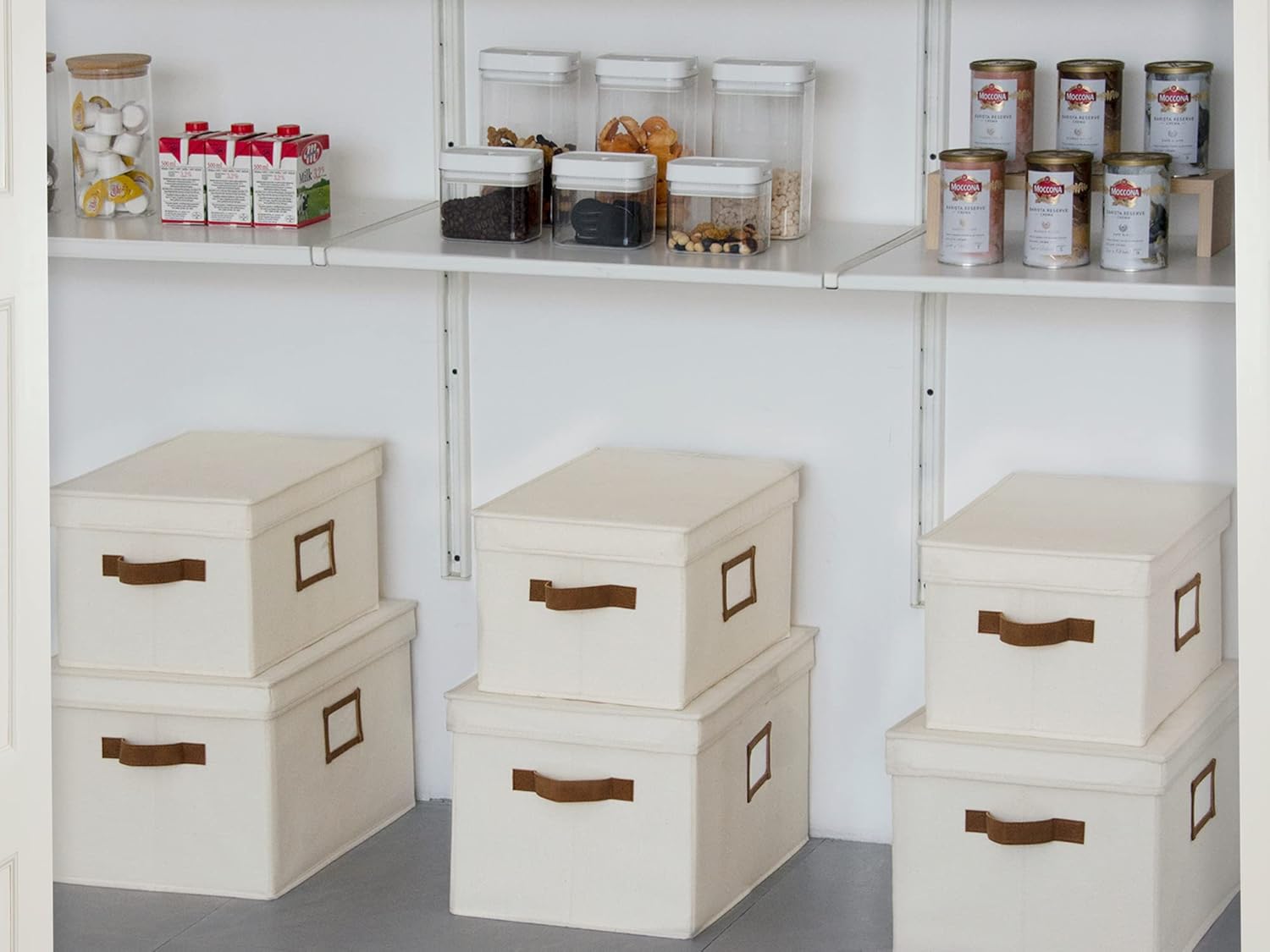 StorageWorks Large Storage Bins with Lids, Decorative Storage Boxes with Lid and PU Handles, Foldable Storage Baskets for Closet, Shelves, Stackable, Ivory, 3-Pack