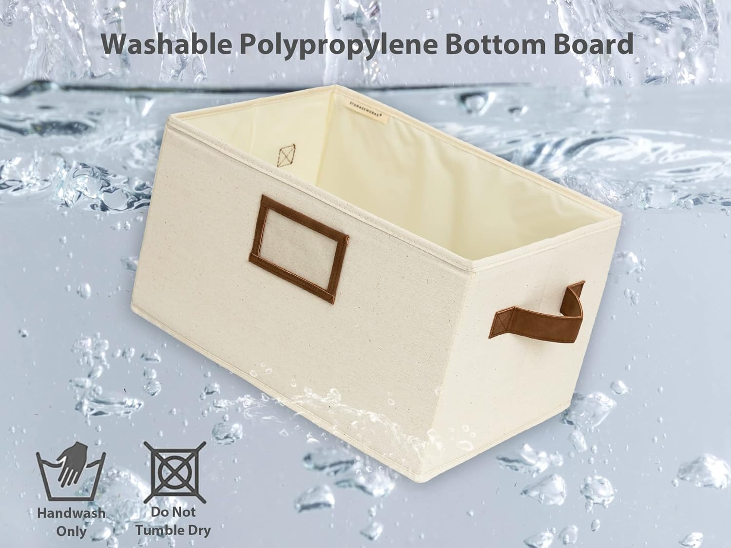 - Storage baskets with two sewn-in PU handles for easy carrying around, and the label holder for easy marking and identifying the items inside.