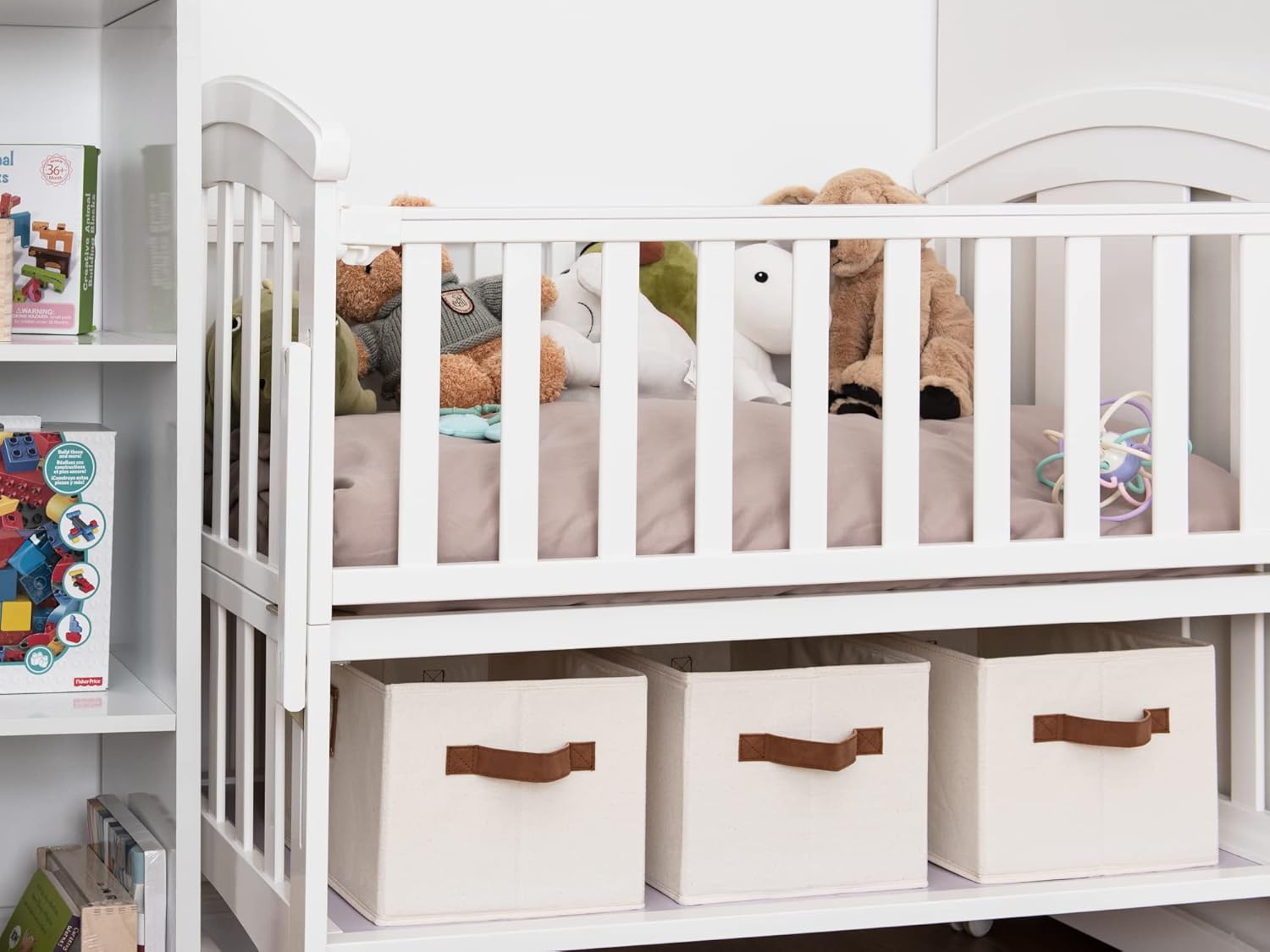 - The natural canvas fabric and the inserted heavy-duty boards of the storage bins allow them to support a weight of up to 30 pounds.