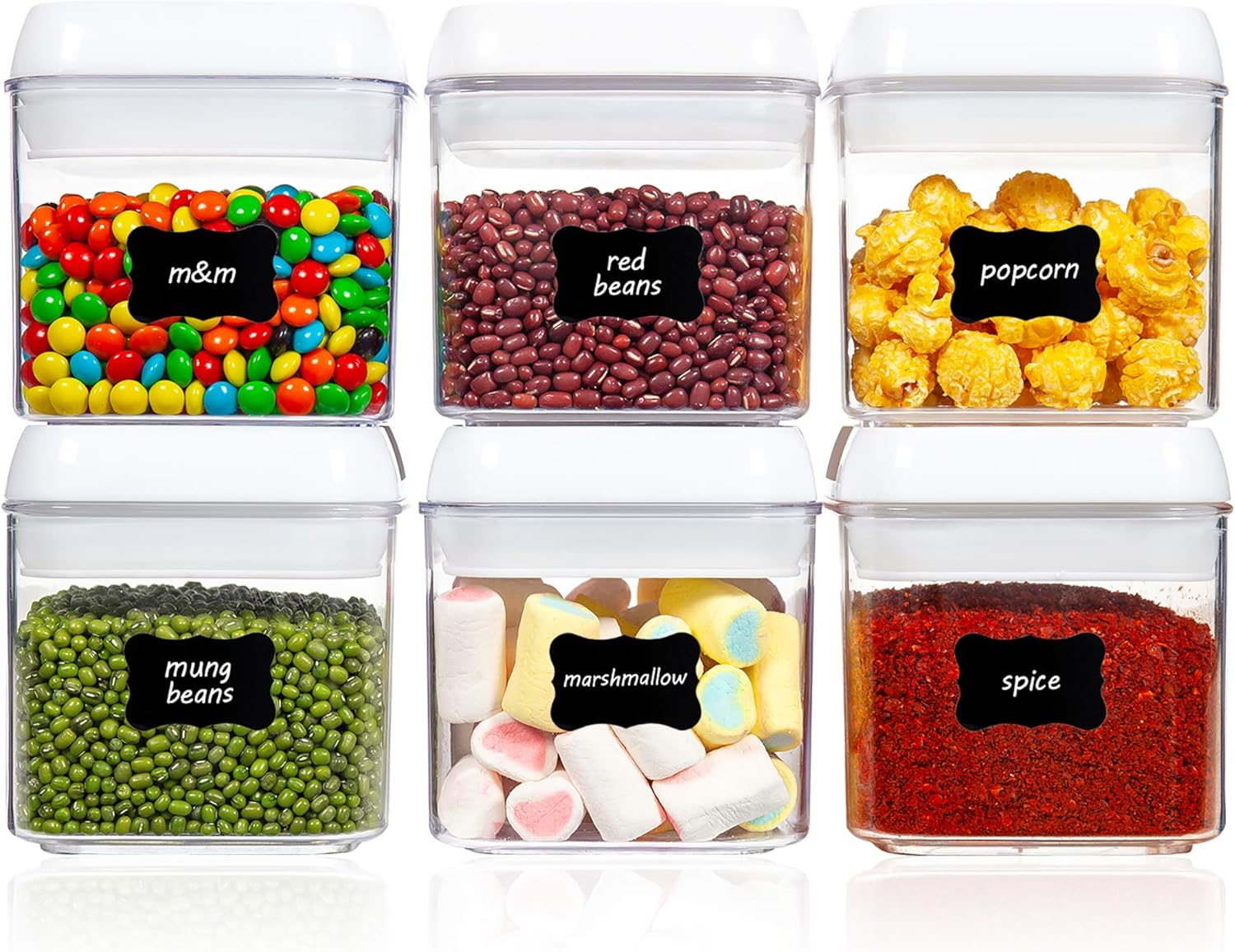 Vtopmart 6 PCS Airtight Food Storage Containers, BPA Free Plastic Snack Containers with Easy Lock Lids, for Kitchen Pantry Organization and Storage, Include 24 Labels, 0.5L