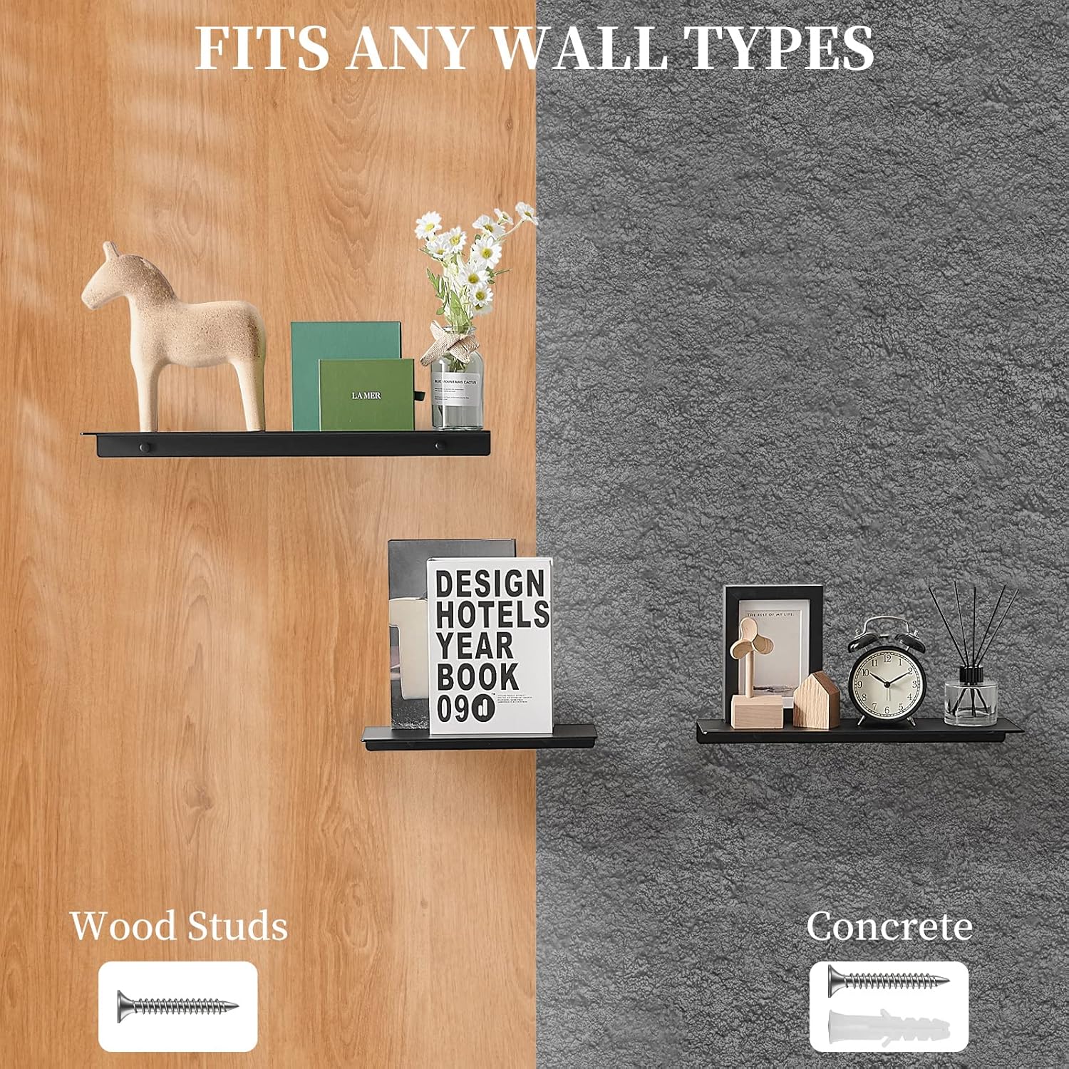 - Made of aluminum: Black floating shelves don't rust and resists daily scratches, corrosion and discoloration; All metal structure, ensure, quality and longevity