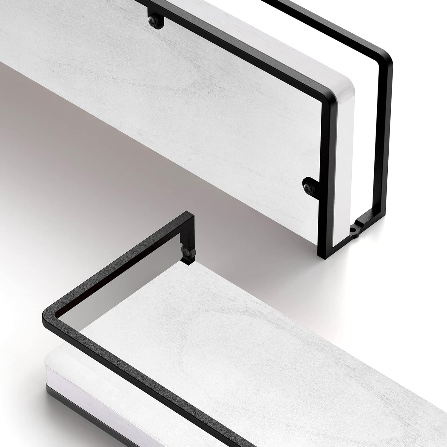 Meangood Floating Shelves Wall Mounted Set of 2, Rustic Wood Wall Storage Shelves for Bedroom,Living Room,Bathroom, Kitchen (White)