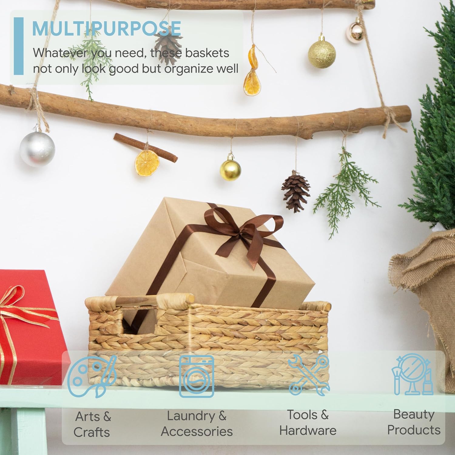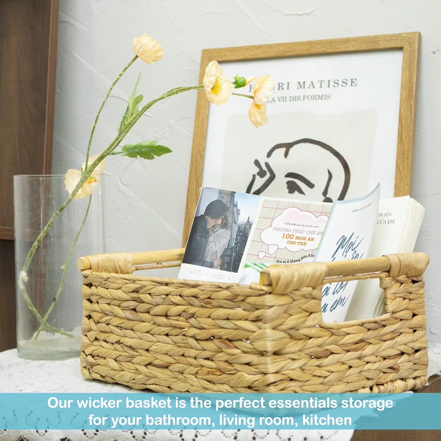 - β Convenient and Attractive - Whether it be by way of pure decor, storage, or organization for kitchen, pantry, or bathroom. This natural baskets with handles suit your home in every way. The rectangular baskets wicker is great for magazines, games, pet toys, media, household items.