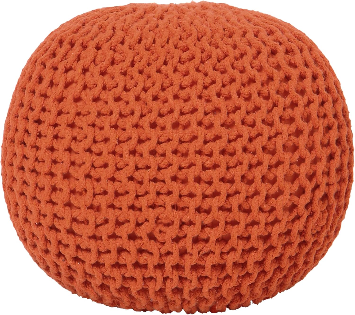 REDEARTH Round Pouf Ottoman - Hand Knitted Cable Boho Poof - Pouffe Circular Footrest for Living Room - Bedroom - Patio - 100% Cotton (19.5"x19.5"x14") - Burnt Orange