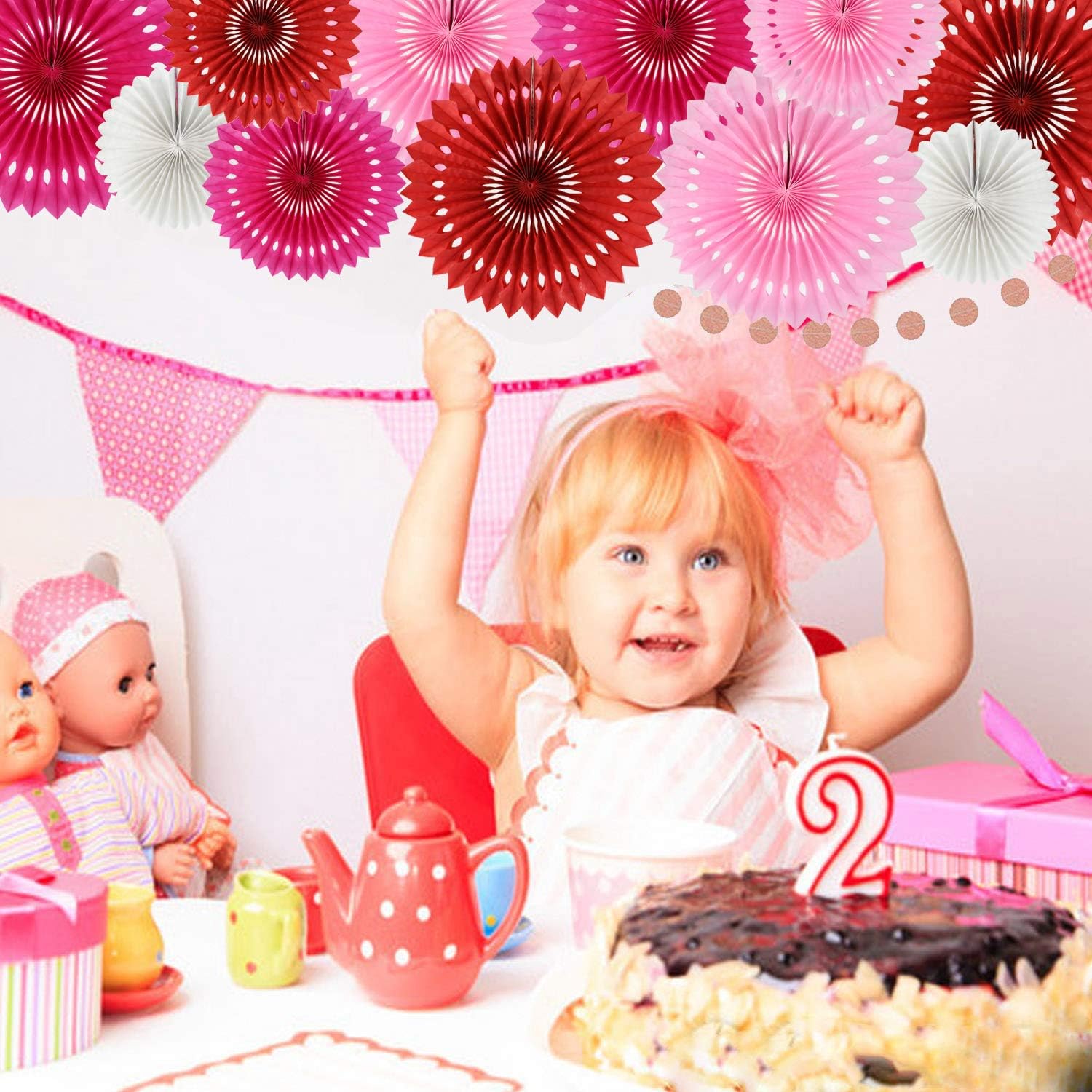 BEISHIDA Red Pink Rose Red Hanging Tissue Honeycomb Round Paper Fans Decor Kit for Birthday Girl Kid Shower Bachelorette Wedding Christmas Backdrops Anniversary Party Supplies(11 Packs)