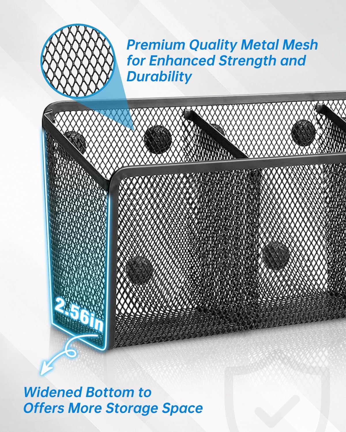 VICNOVA Magnetic Pencil Holder - Metal Pen Holder with Strong Magnets - Storage Basket Organizer for Whiteboard, Refrigerator, Locker Accessories
