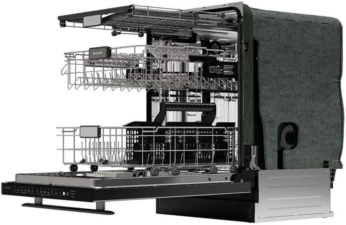 SHARP SDW6757ES Slide-In Dishwasher, Stainless Steel Finish, 24" Wide, Soil Sensors, Premium White LED Interior Lighting, Smooth Glide Rails, Heated Dry Option, Responsive Wash Cycles, Power Wash Zone
