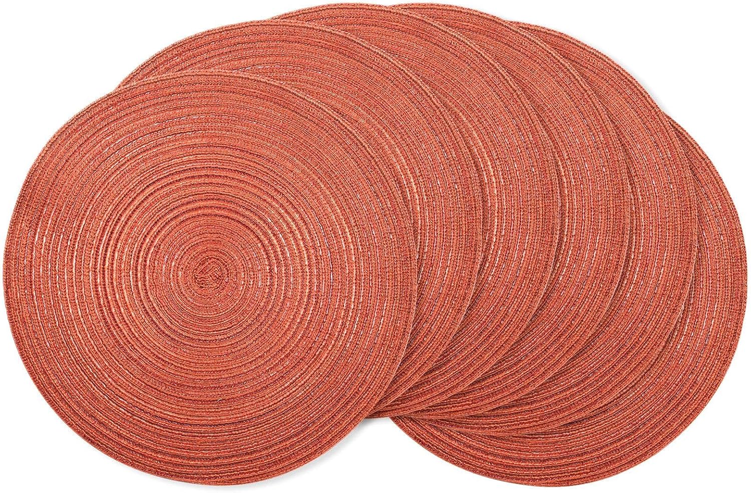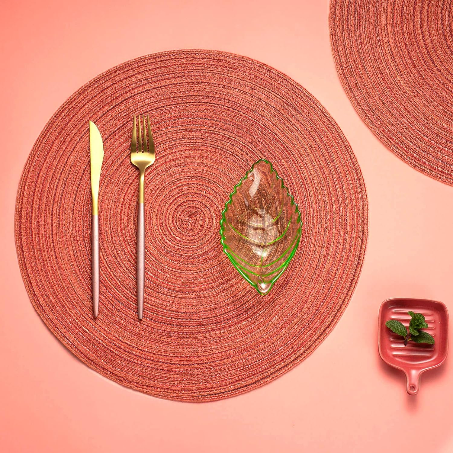 AHHFSMEI Round Braided Placemats Set of 6 Round Table Mats for Dining Tables Natural Woven Heat Resistant Place mats 15 Inch (Dark Orange)
