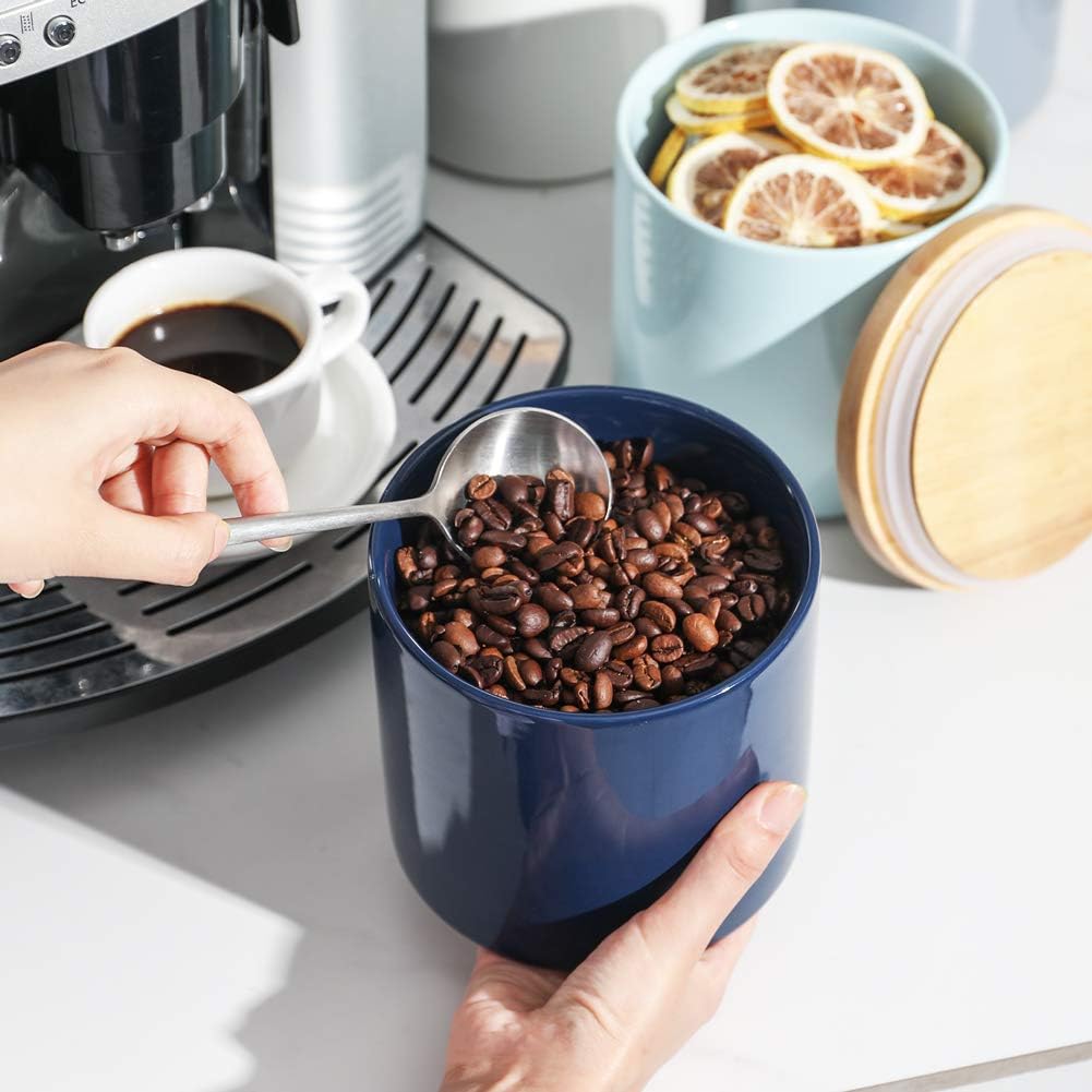 Sweejar Kitchen Canisters Ceramic Food Storage Jar, Stackable Containers with Airtight Seal Wooden Lid for Serving Coffee Bean, Flour, Tea, Cookies and More - 58 Fl Oz(Navy)