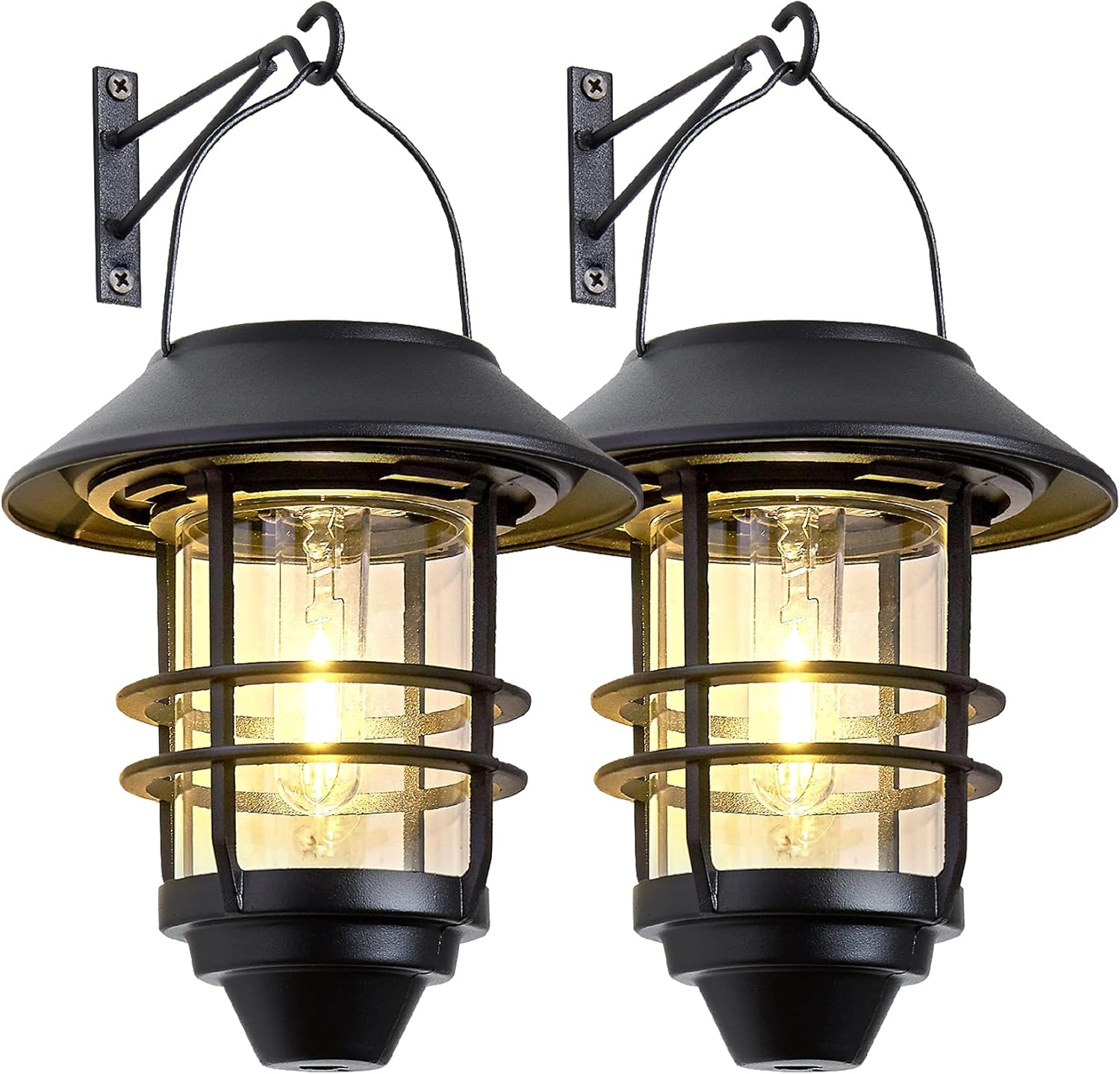 Solar Lantern Outdoor Lights, Hanging Waterproof Lantern Lights with Wall Mount Kit for Garden Porch Fence 2 Pack