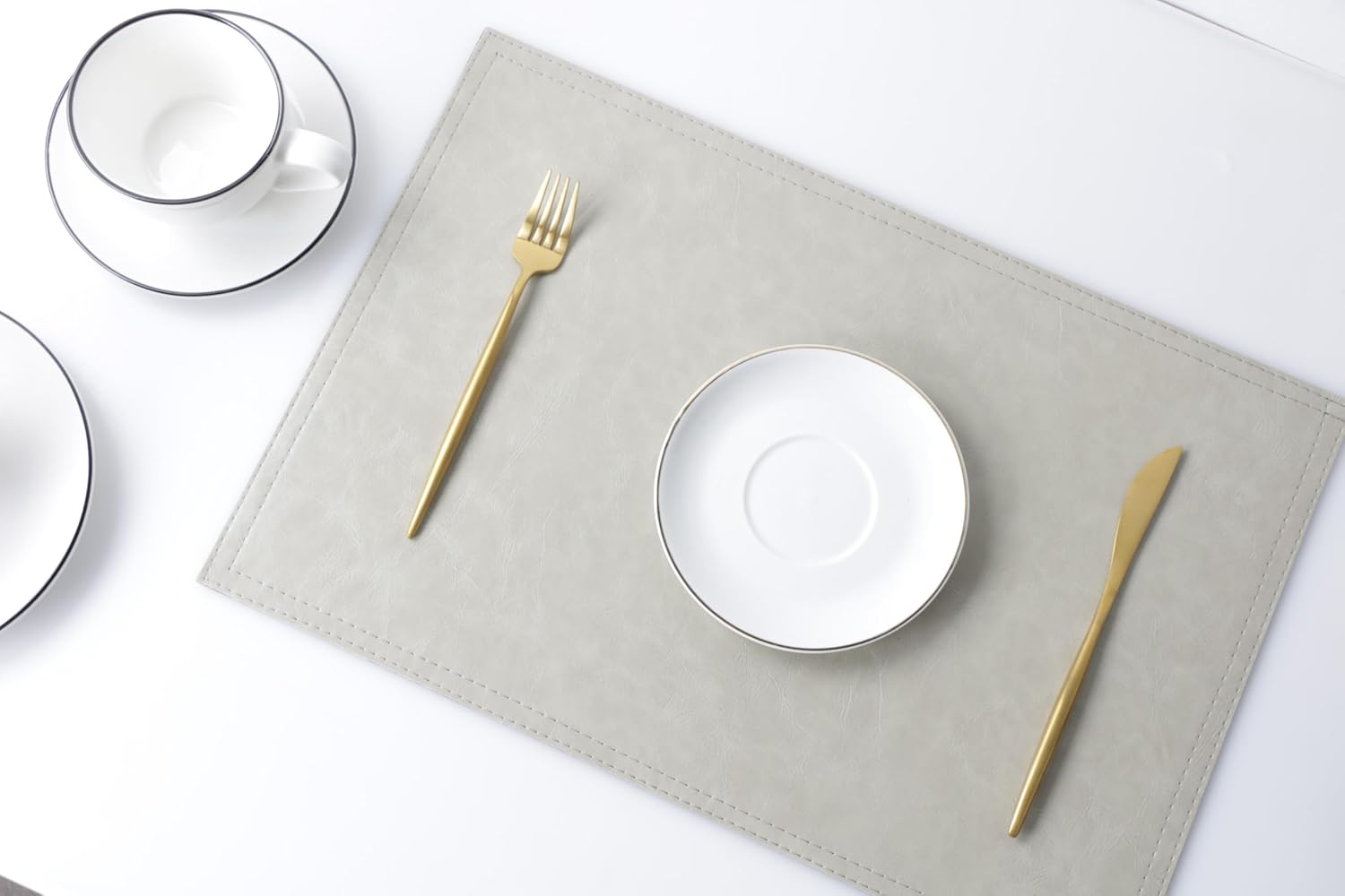 Waterproof PU Placemats,Set of 8, Faux Leather Dining Table Mat, Easy to Wipe Off Scrub Vinyl Mat, Heat & Stain Resistant for Office Conference Table, Home Decor G Parchment White