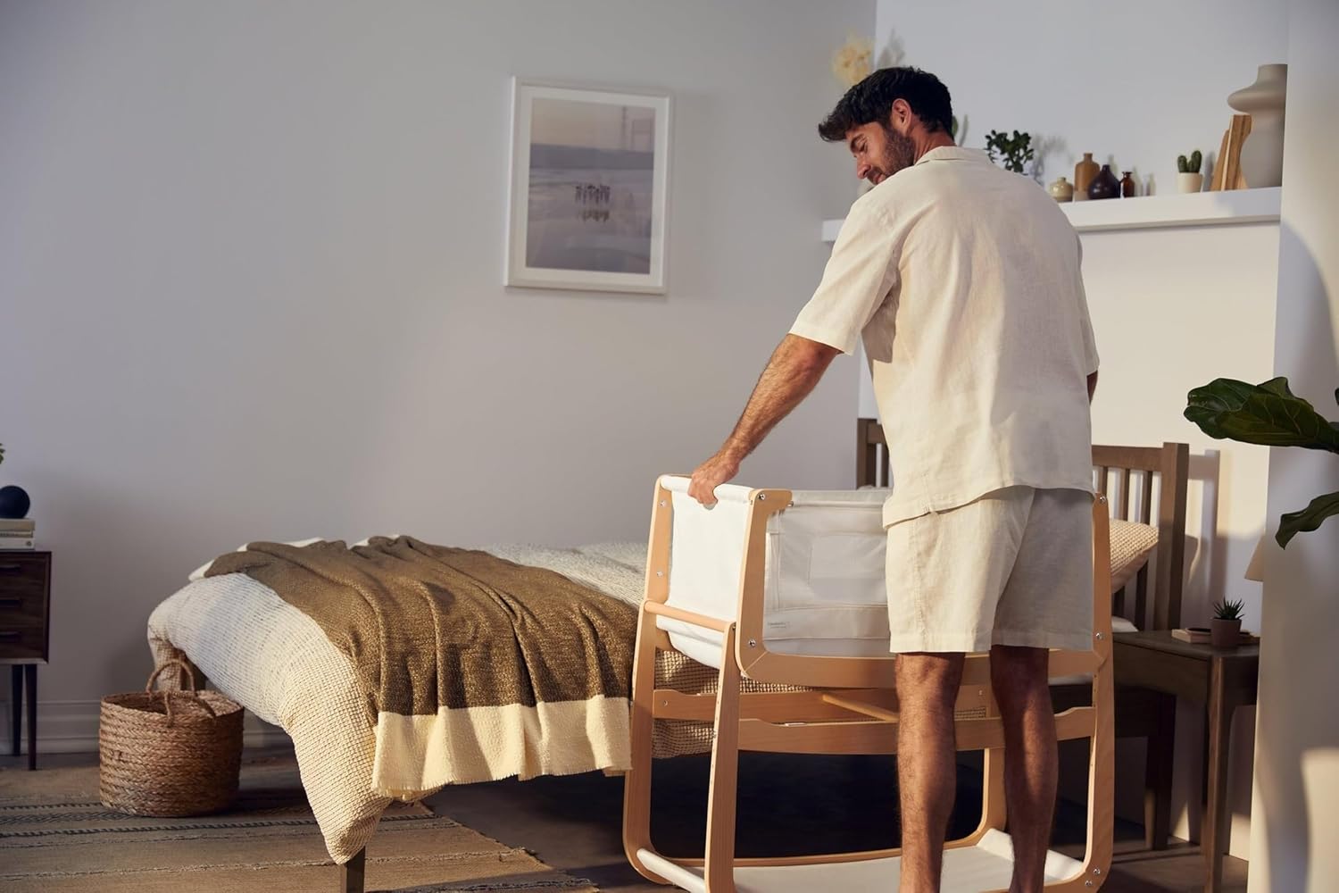SnuzPod 4 Rocking Baby Bassinet Bedside Sleeper - Lightweight, Portable Bedside Bassinet, Lift Off Crib, Zip Down Wall, 3D Breathable Mattress, 6 Height Settings and Comfort Incline Mode, Natural
