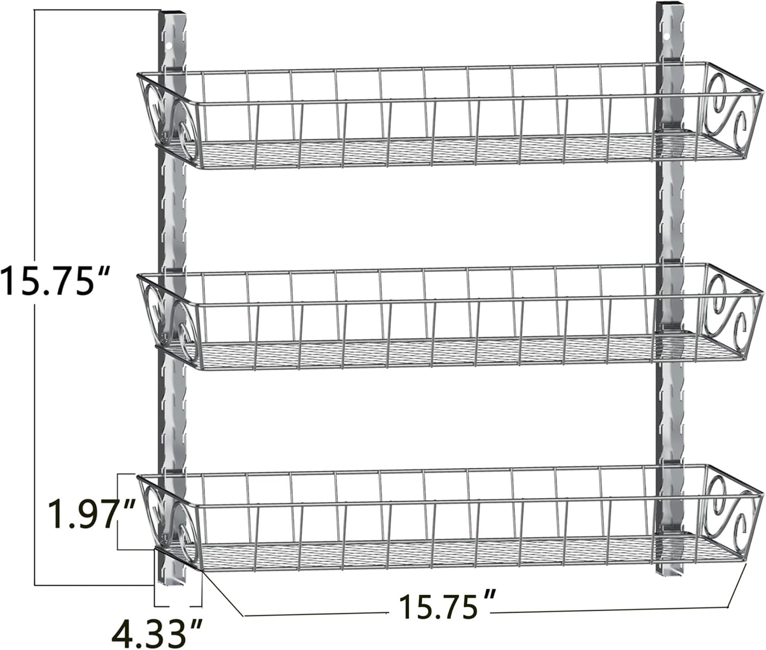- Large-capacity Spice Rack for Wall: With the same wall area, provides twice as much storage space as traditional products. Wider basket bottom (4.33 inches) for more items, Like large bottles, spice jars, seasonings, cans, food storage containers and more.
