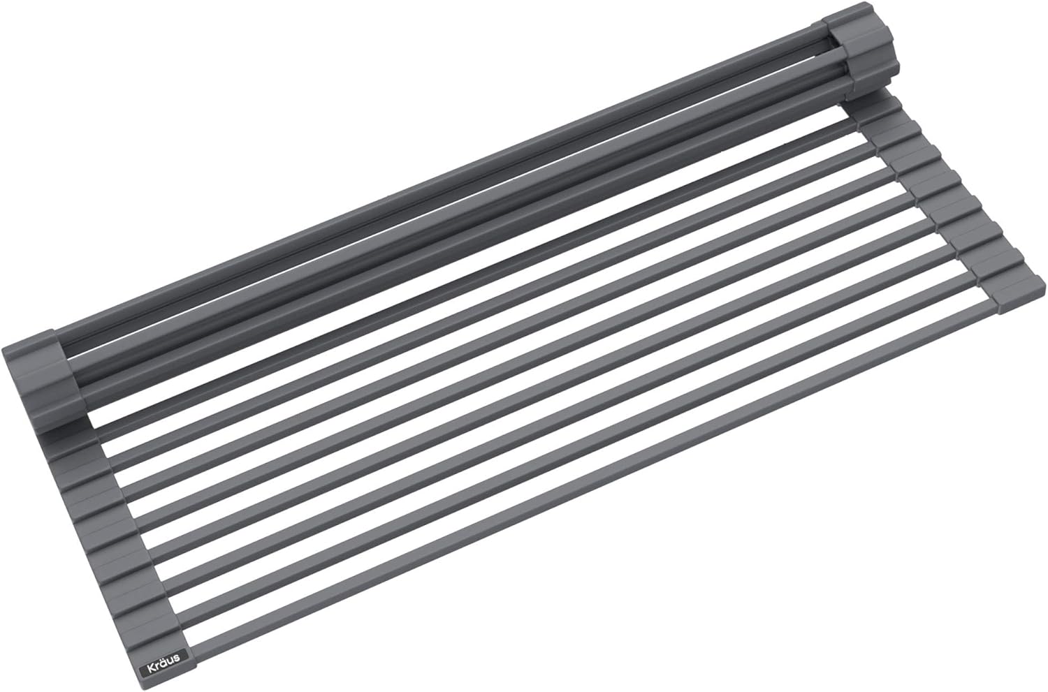 Kraus Multipurpose Over-Sink Roll-Up Dish Drying Rack, Colander and Trivet in Dark Grey, KRM-10DG