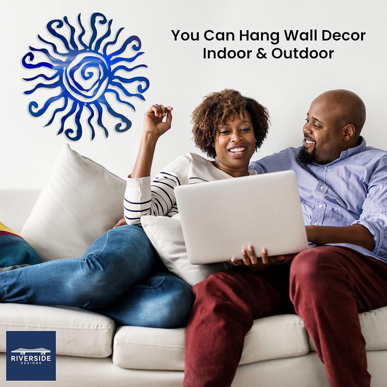 Riverside Designs Wacky Sun Metal Wall Art Indoor/Outdoor Decor - 30" Blue Rust Proof Wall Sculpture - Made in USA - Ideal for Bedroom, Garden, Home, Patio and Farmhouse