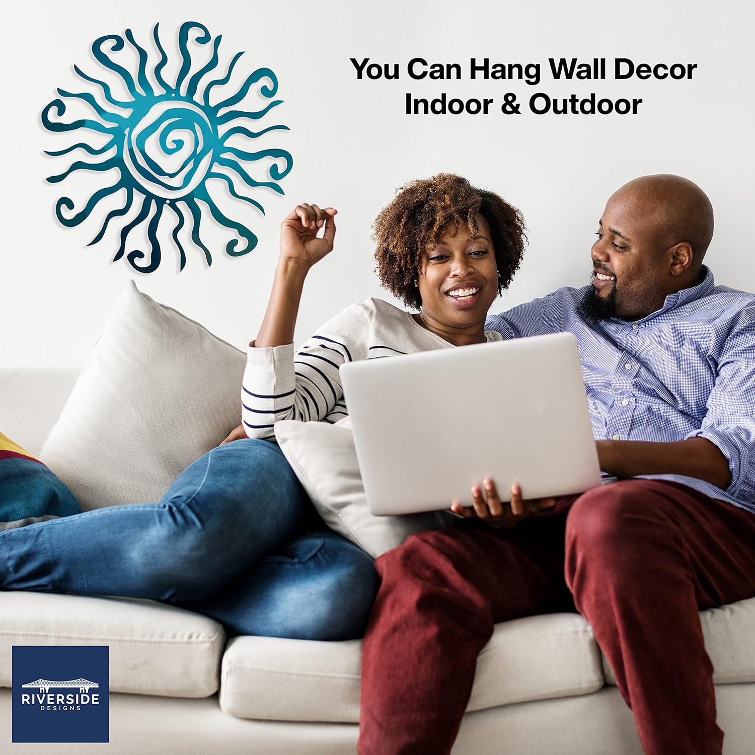 Riverside Designs Wacky Sun Metal Wall Art Indoor/Outdoor Decor - 36" Teal Rust Proof Wall Sculpture - Made in USA - Ideal for Bedroom, Garden, Home, Patio and Farmhouse