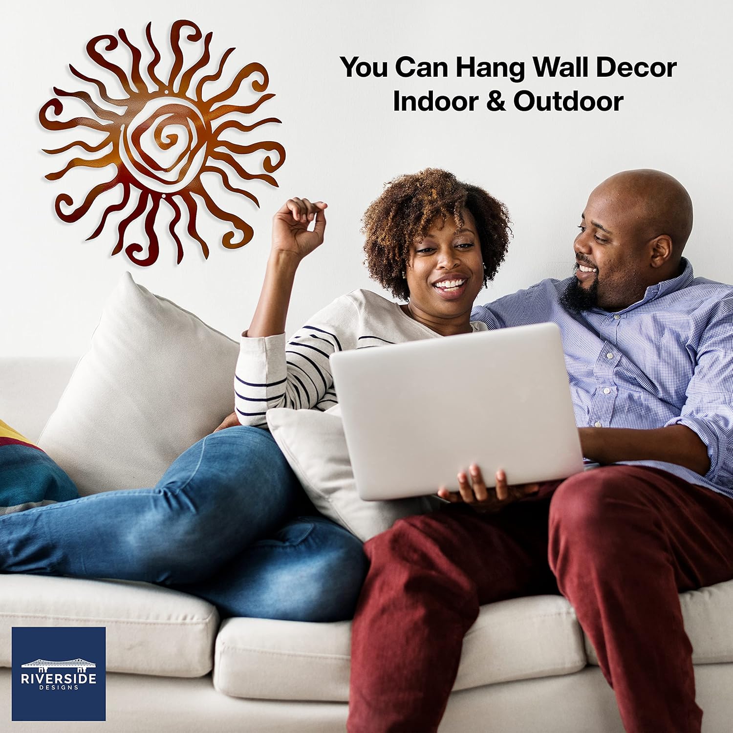 Riverside Designs Wacky Sun Metal Wall Art Indoor/Outdoor Decor - 36" Copper Rust Proof Wall Sculpture - Made in USA - Ideal for Bedroom, Garden, Home, Patio and Farmhouse