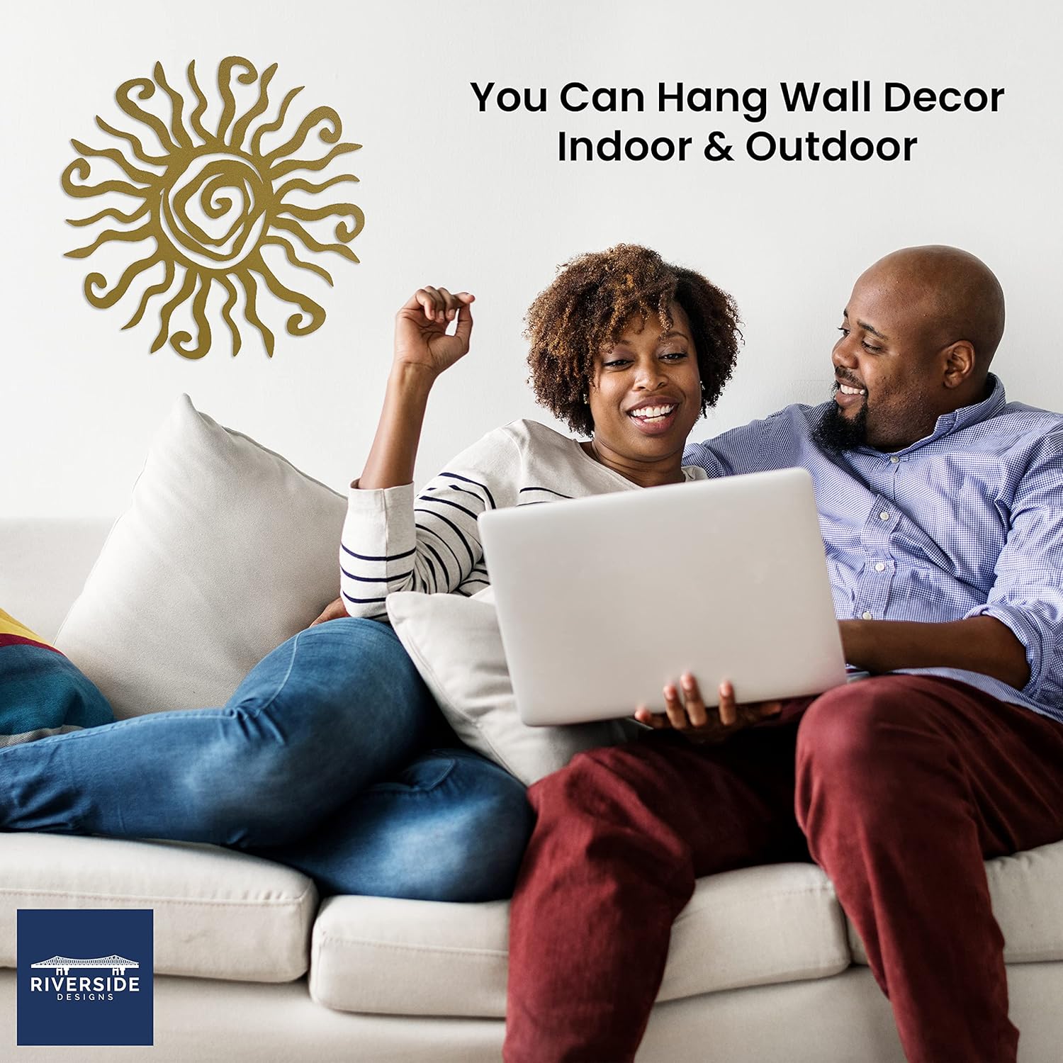 Riverside Designs Wacky Sun Metal Wall Art Indoor/Outdoor Decor - 36" Gold Rust Proof Wall Sculpture - Made in USA - Ideal for Bedroom, Garden, Home, Patio and Farmhouse