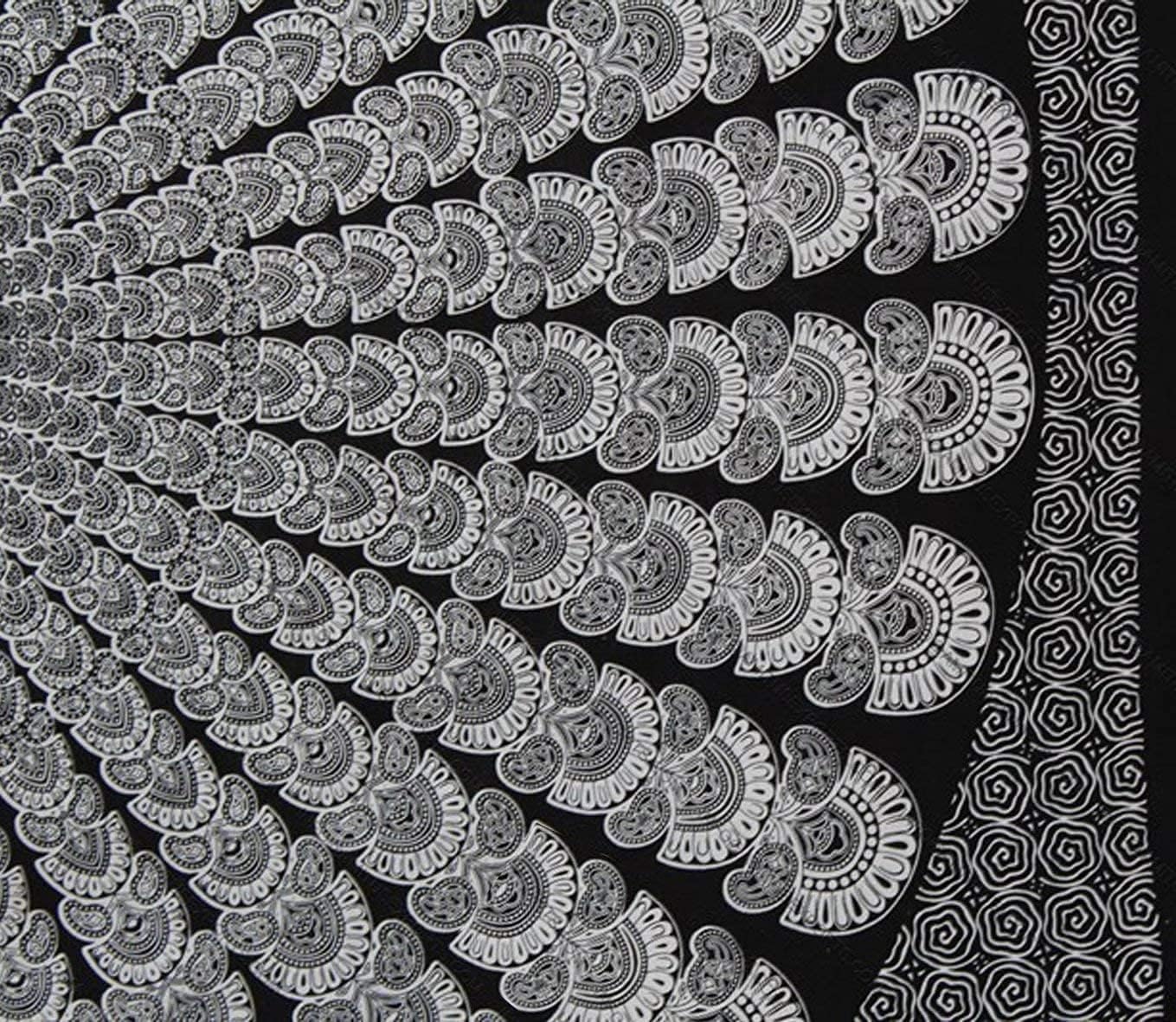 Bless International Handmade Indian hippie Bohemian Psychedelic Peacock Mandala Wall hanging College Dorm Beach Throws Table Cloth Bedding Tapestry (Black White, Medium(54x60Inches)(137x152cms))