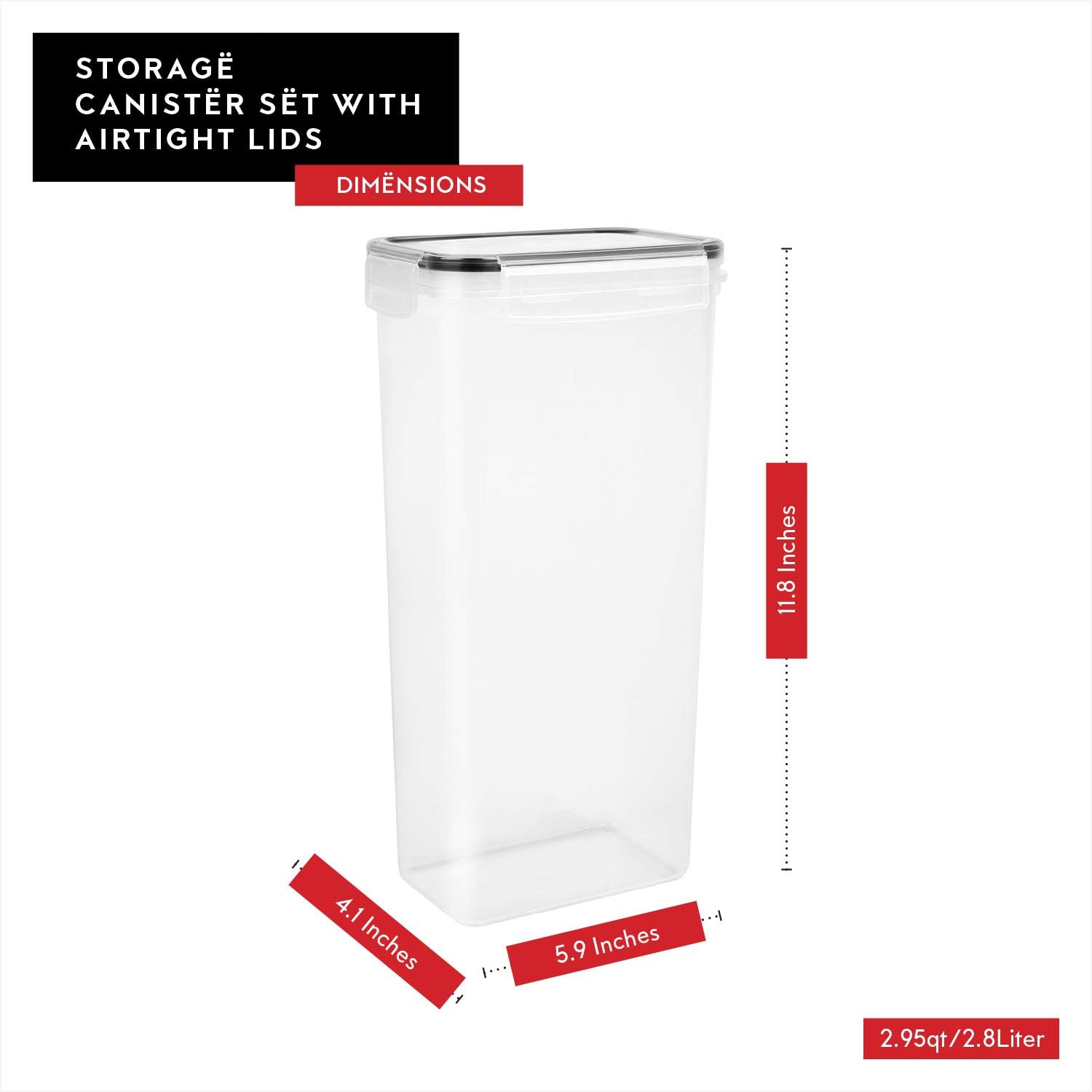 - Perfect For Pantry Organization: This container set includes 4 airtight containers (2.95 qt / 2.8 liters), which are perfect for storing Spaghetti, Noodles & Pasta it can also be stored baking supplies, oats, pasta, rice, flour, sugar, coffee, tea, snacks, nuts and even a small box of cereal, This set comes in a beautiful box which makes it an ideal gift for any friend or family.