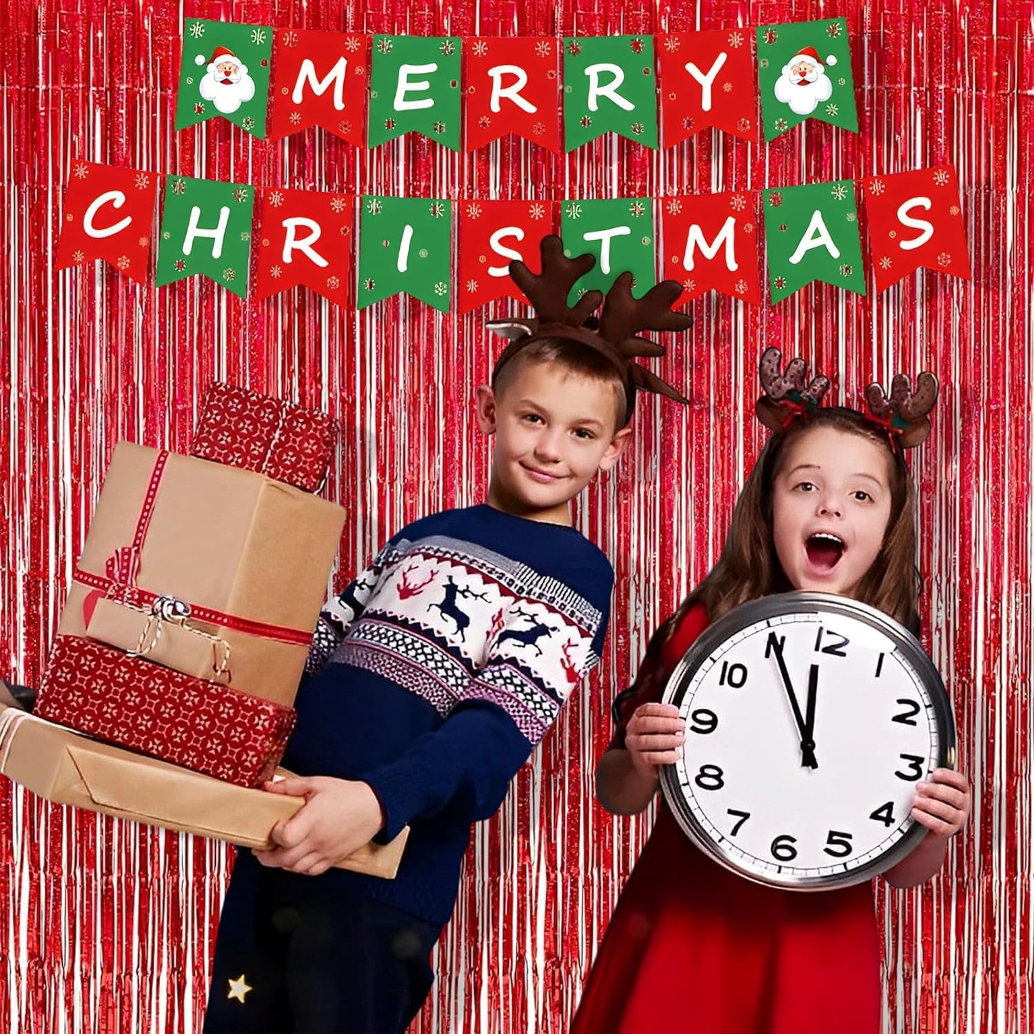 BRAVESHINE Red Tinsel Foil Fringe Curtains - 2Pcs 3.2x8.2ft Holidays Photo Booth Backdrop for Girl/Birthday/Valentine’s/Christmas/Bridal/Bachelorette/Anniversary/Engagement Party/Halloween Decorations