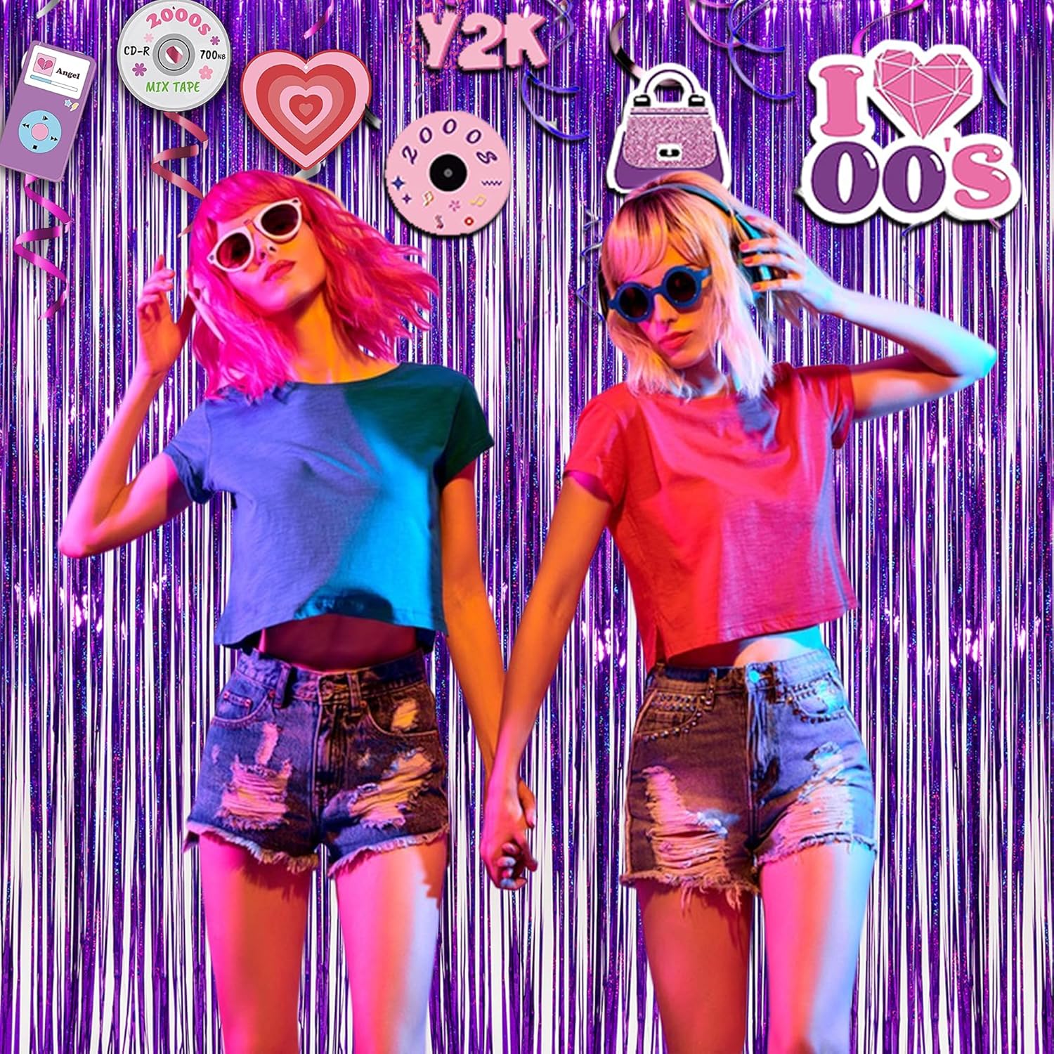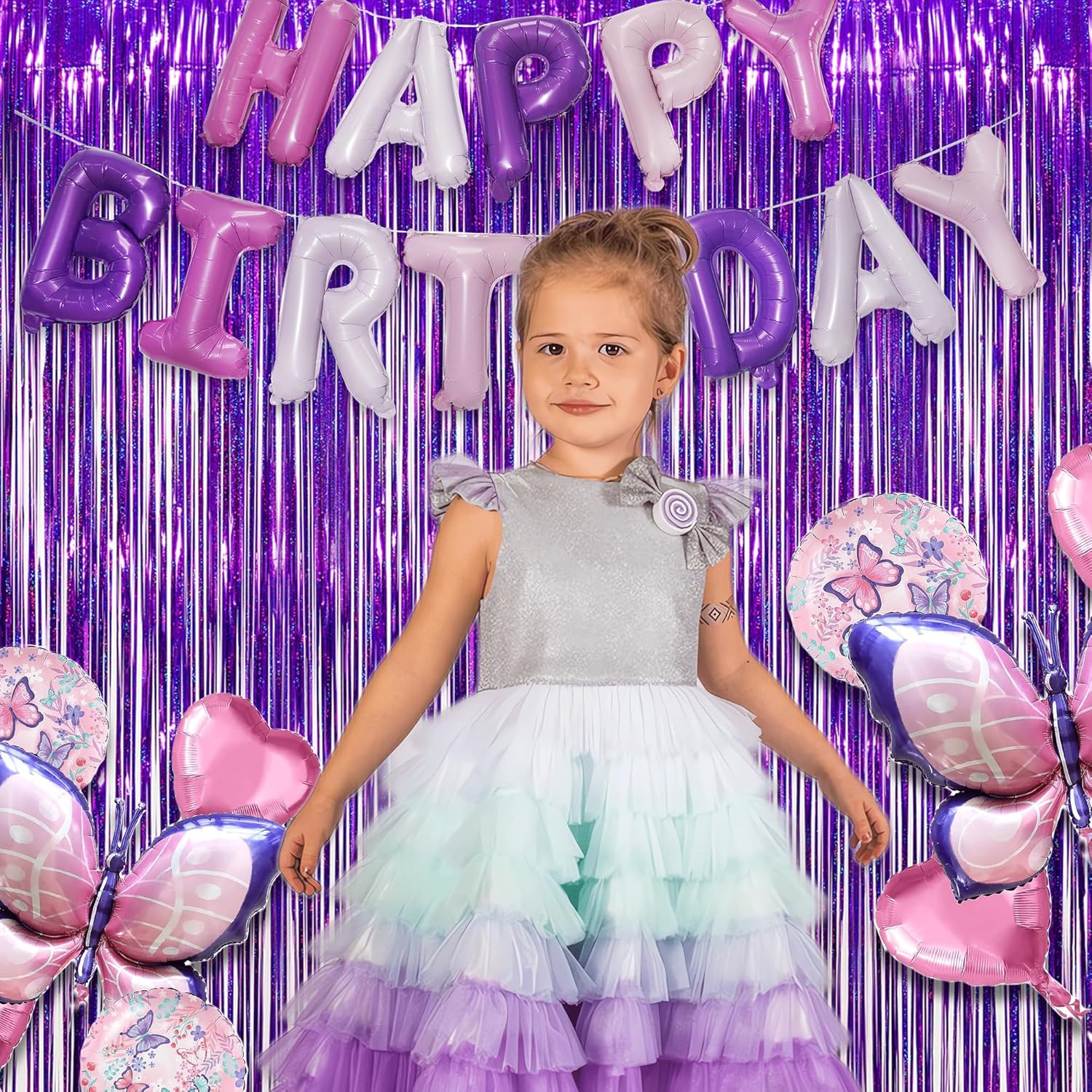 - Pack of 2( 3.2 ft x 8.2 ft for each pack), Greatril Brand purple foil fringe tinsel curtain mermaid euphoria themed party decorations.