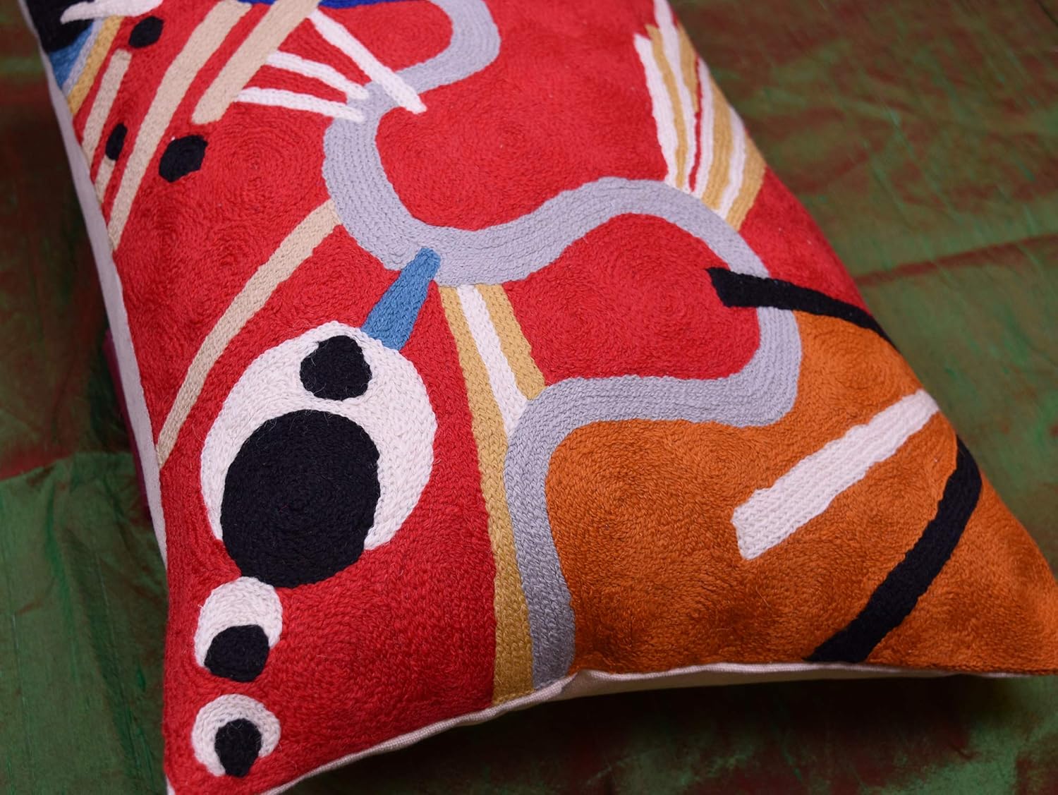 - β€ REFRESH YOUR HOME OR OFFICE DECOR: These unique abstract Lumbar Red Kandinsky Intuitive Accent throw pillow covers would bring together the artistic elements of any room, creating a harmonious design and perfect air of sophistication. Pillow Cover Size: 14" x 20". Pillow Cover is not Reversible, Backing: Canvas (See additional Pictures). The whole front of this contemporary pillow cover is covered with hand embroidery.