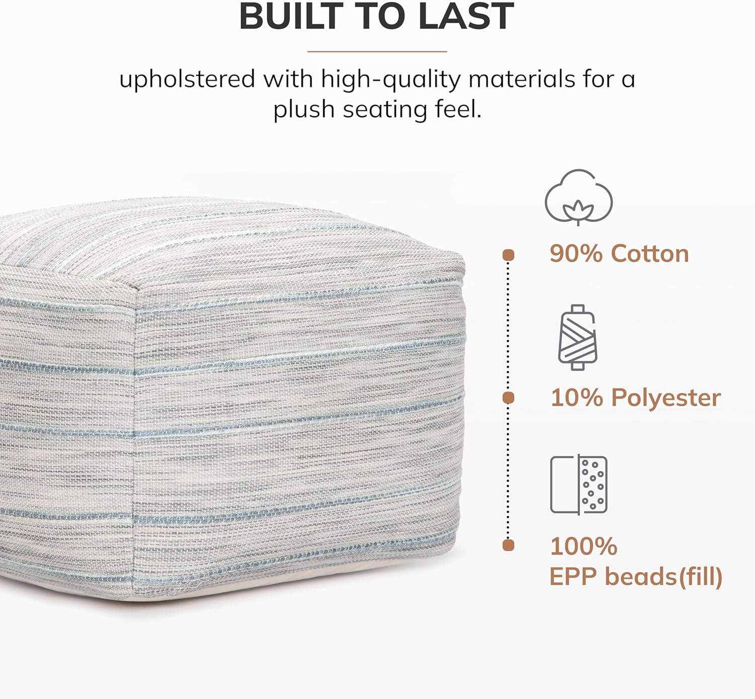 - Eco-Friendly & Durable Fill: Pre-filled with recyclable and resilient Expanded Polypropylene (EPP) beads, this pouf ottoman foot rest offers support and comfort while promoting sustainable living practices. Its eco-conscious construction makes it a smart, premium materials choice for the modern home.