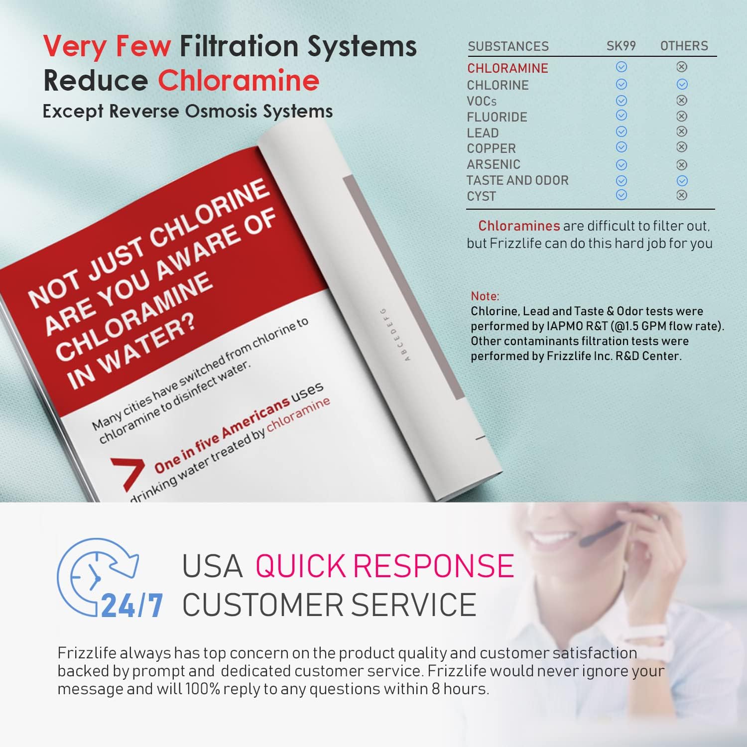 - γMoney Saver & Eco-FriendlyγFrizzlife SP99 under sink water filter system is designed with the concept of convenience and cost-effective. When replacing the filters, You donβt have to throw away the whole plastic housing but only the core filters inside. Choose Frizzlife to save more waste to the earth, and enjoy the great-tasting water in a more economic and greenway! Search replacement filters:M3001(Asin#B0855G76RK),M3002(Asin#B0855MPDR1),M3003(Asin#B0855VDQGP)