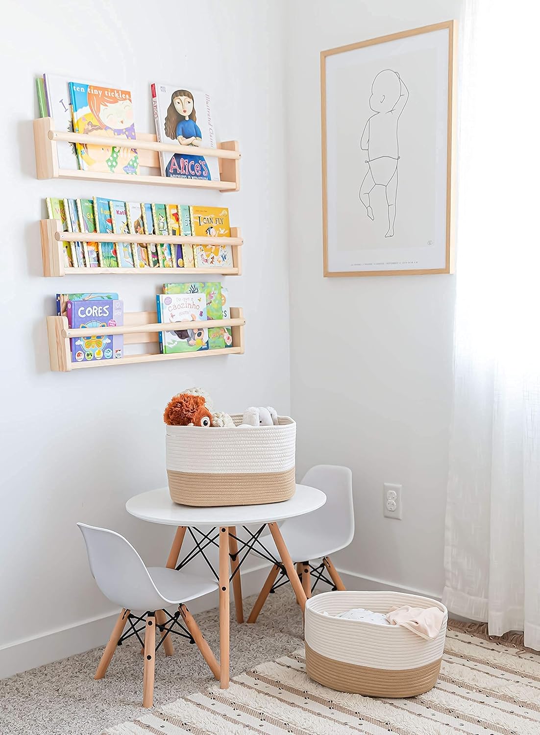 - Discrete, Built-In Carry Handles – These fabric rope baskets for storage also feature slim hand holds built right into the sides of each round basket for a seamless look that’s also functional. Perfect for picking up toys or carrying items around the house.