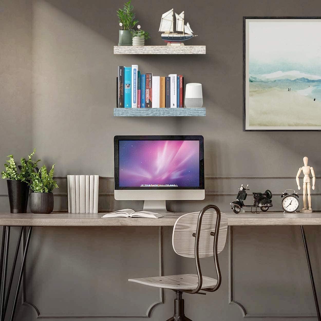 Sorbus Floating Shelves - 2 Pack 16 Inch Rustic & Blue Wall Shelves for Bedroom, Kitchen, Living Room, Bathroom Shelves, Home Decor, Office - Floating Shelf for Trophy, Books, Frames, Toilet Paper