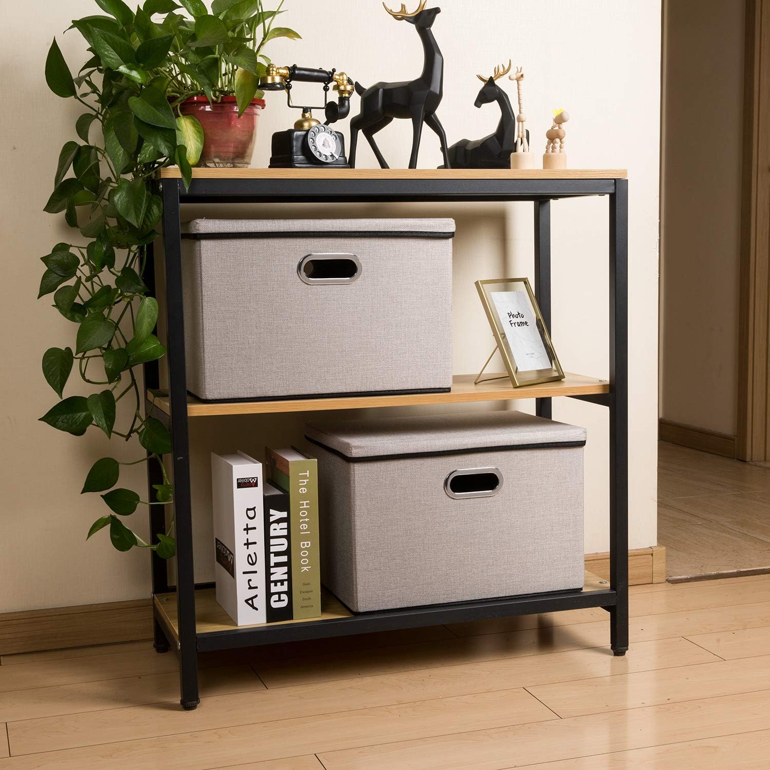 - 【Fashionable Bins】Designed to match interior decor and style in any room in the home or office. Enjoy the relaxing ambiance of the soft light gray and natural black neutral color scheme.
