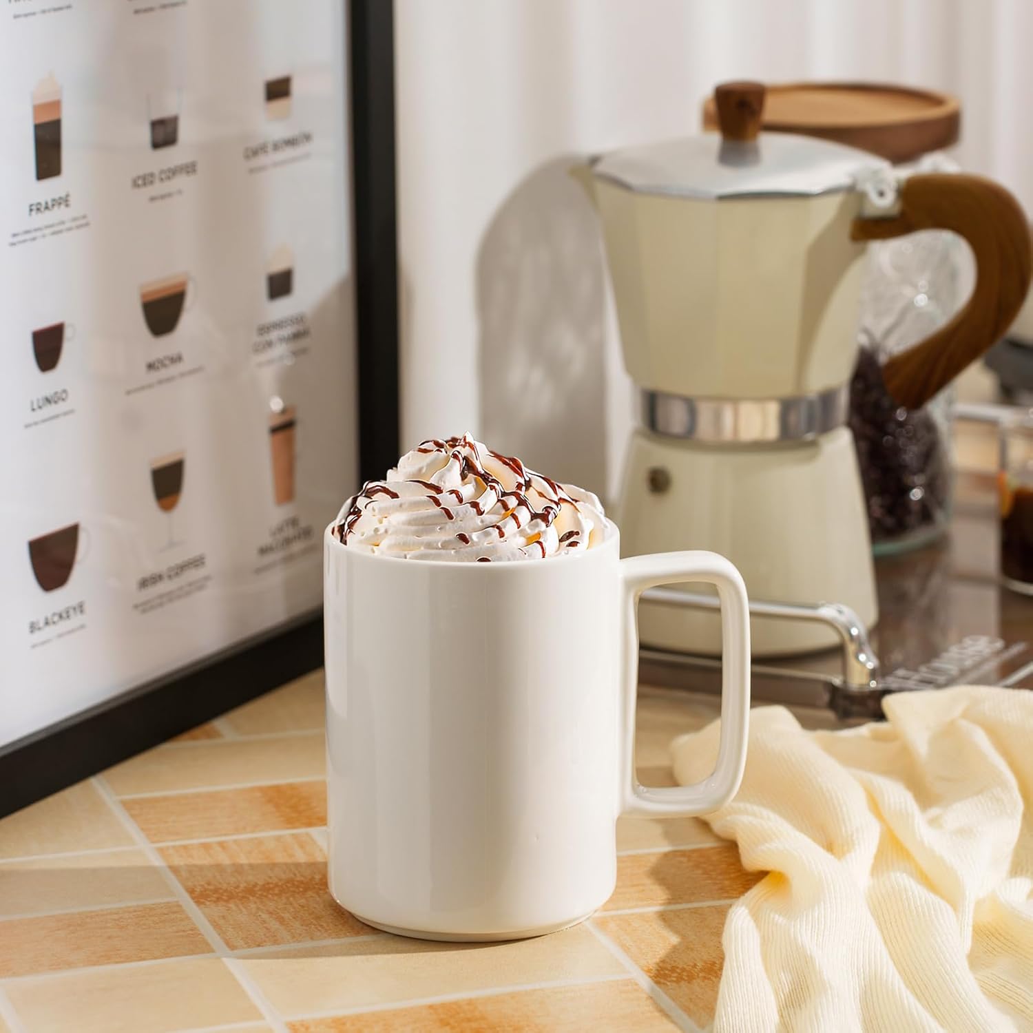 E-liu Porcelain Tea Mugs Coffee Mug Set, Large 15 Ounces Cups for Coffee, Tea, Cocoa, and Mulled Drinks, Set of 6, White