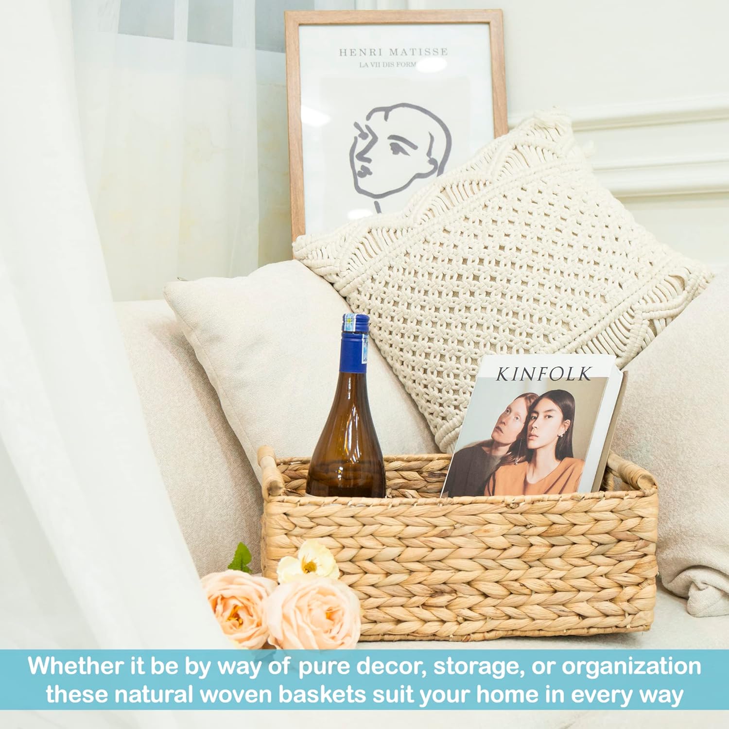 - β Wicker Baskets - Whether it be by way of pure decor, storage, or organization for kitchen, pantry, or bathroom. This natural water hyacinth basket suit your home in every way. The rectangular storage basket is great for magazines, games, pet toys, media, household items.