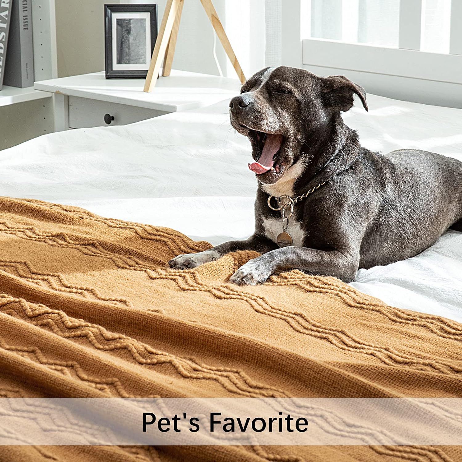MIULEE Knitted Brown Throw Blanket for Couch,Boho Bed Decor Knit Outdoor Blankets Throw Size with Tassels Cozy Woven for Sofa Home Chair Wave Pattern 50" x 60" Inches