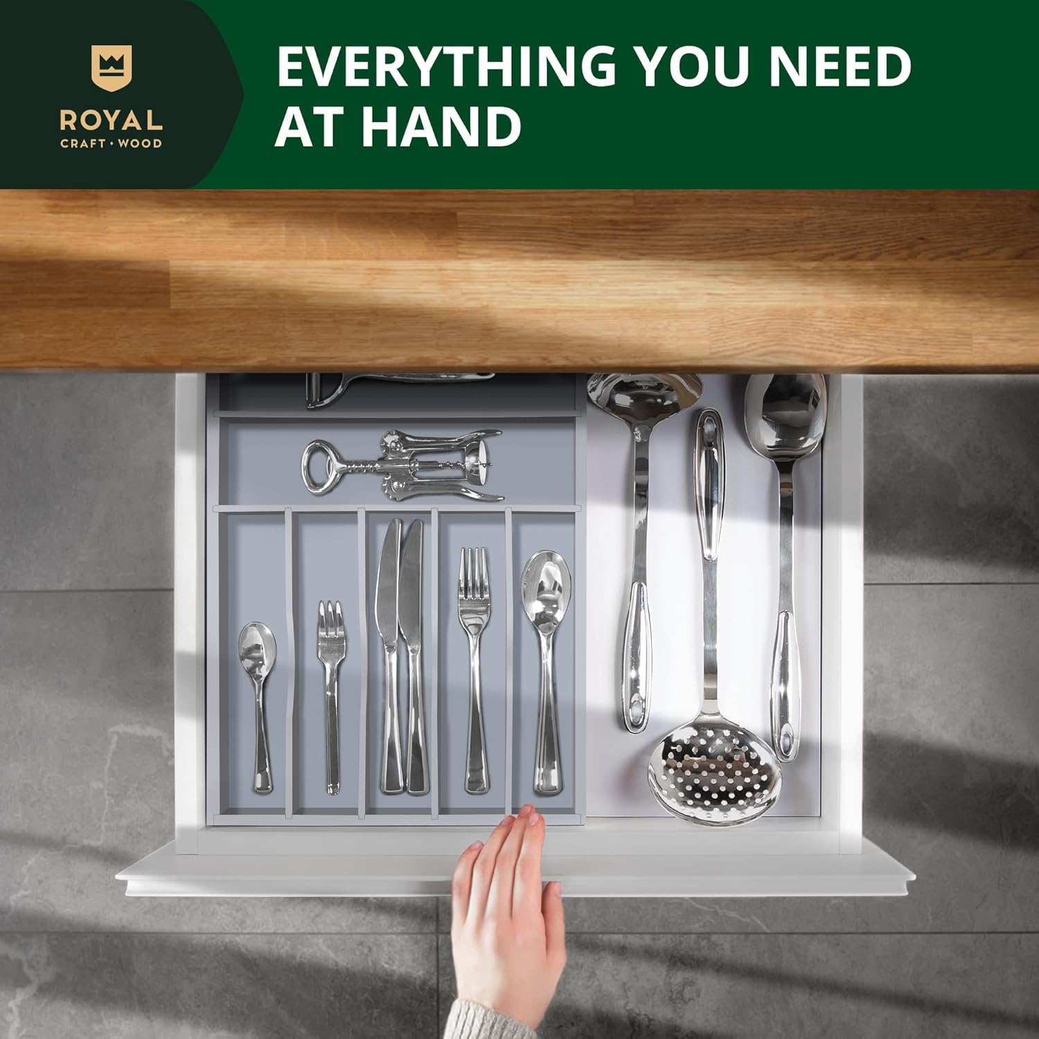 ROYAL CRAFT WOOD Luxury Bamboo Kitchen Drawer Organizer - Silverware Organizer - Utensil Holder and Cutlery Tray with Grooved Drawer Dividers for Flatware and Kitchen Utensils (7 Slot, Gray)